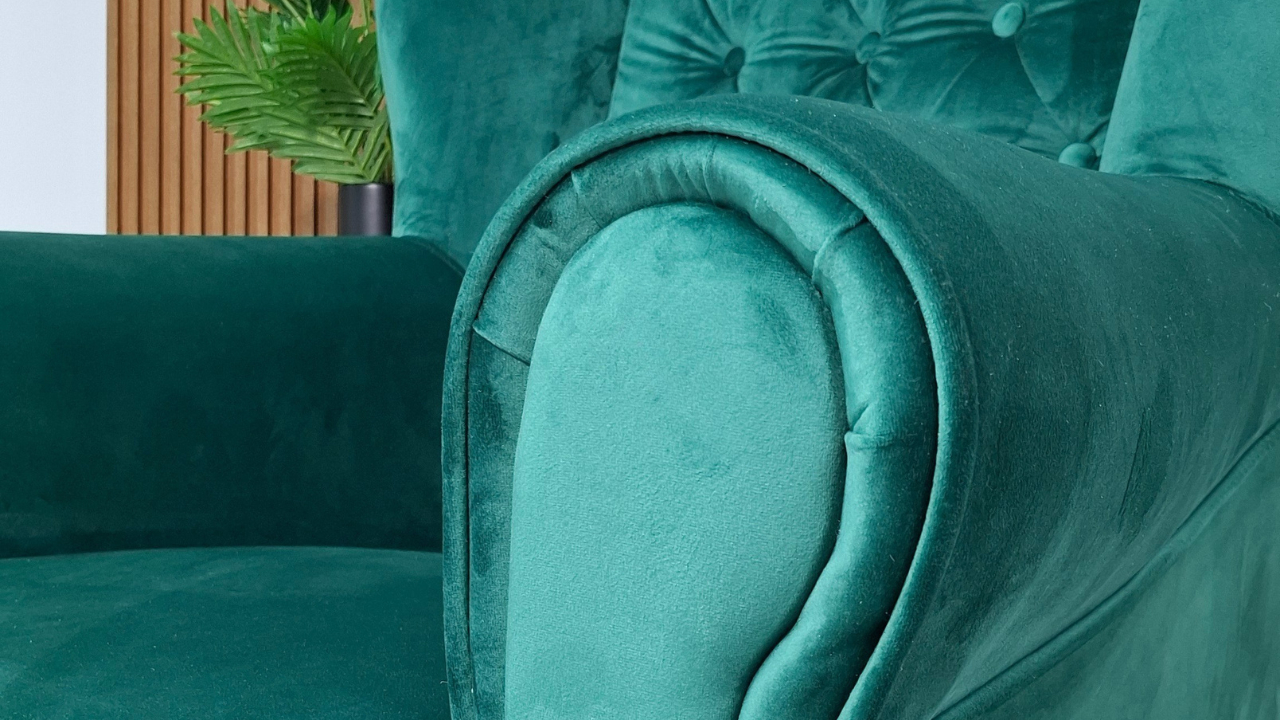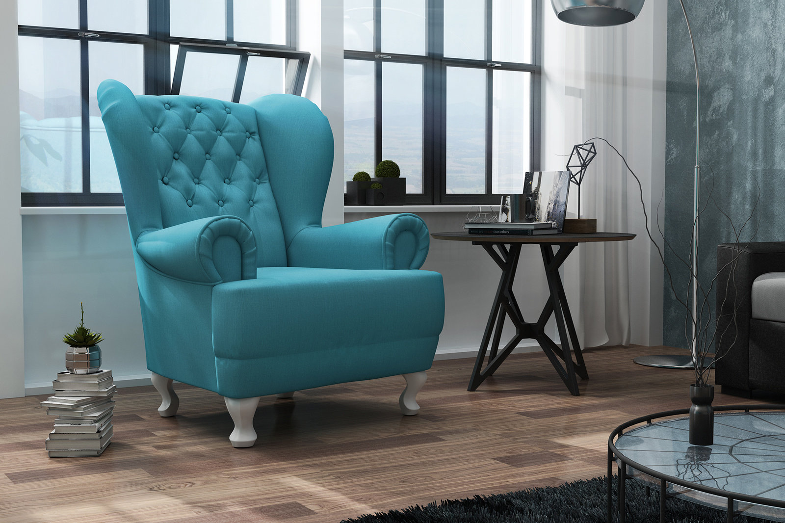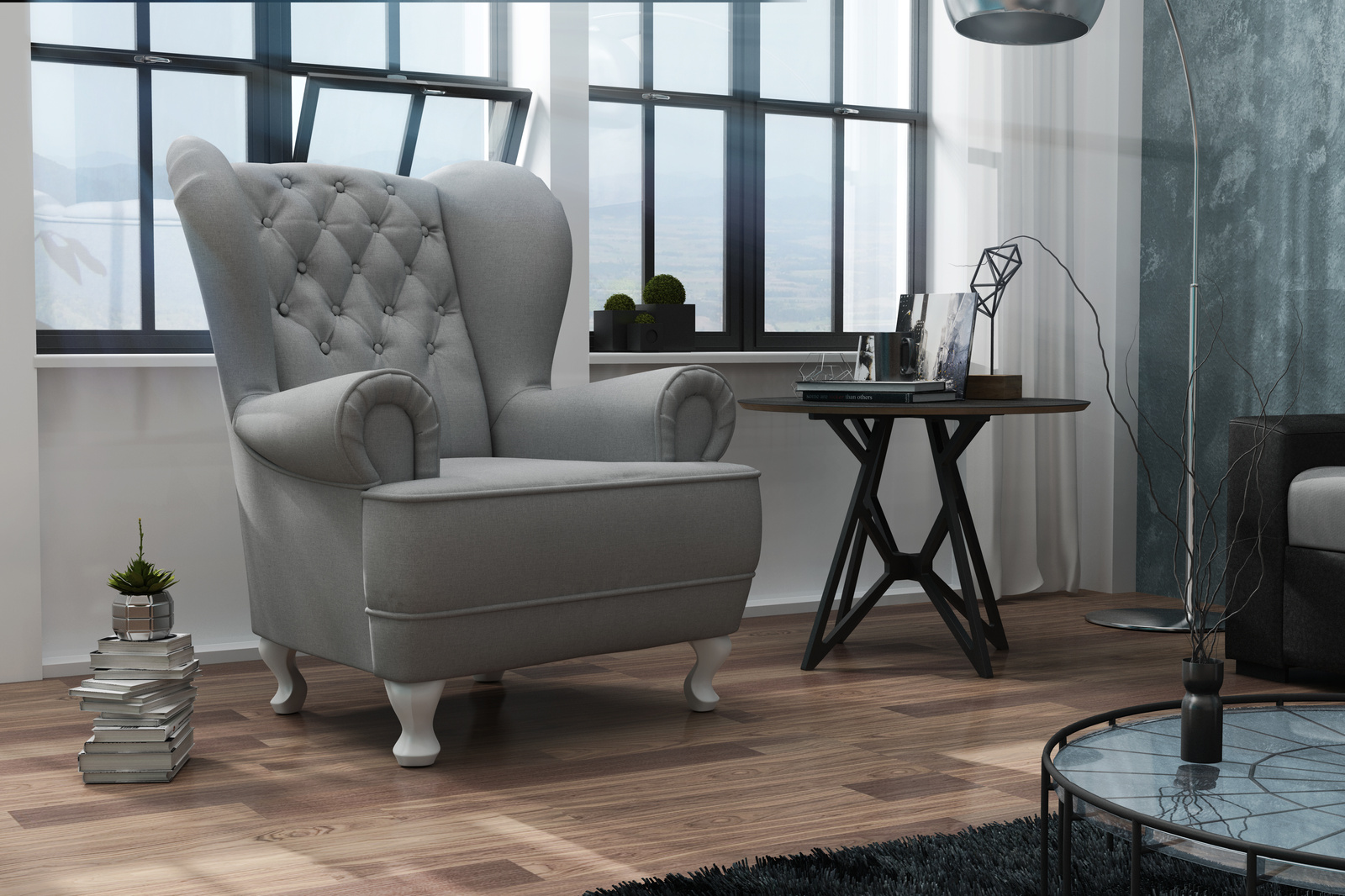 Fotel wykonany został na drewnianym stelażu, co zapewnia stabilność oraz trwałość na długie lata użytkowania.
