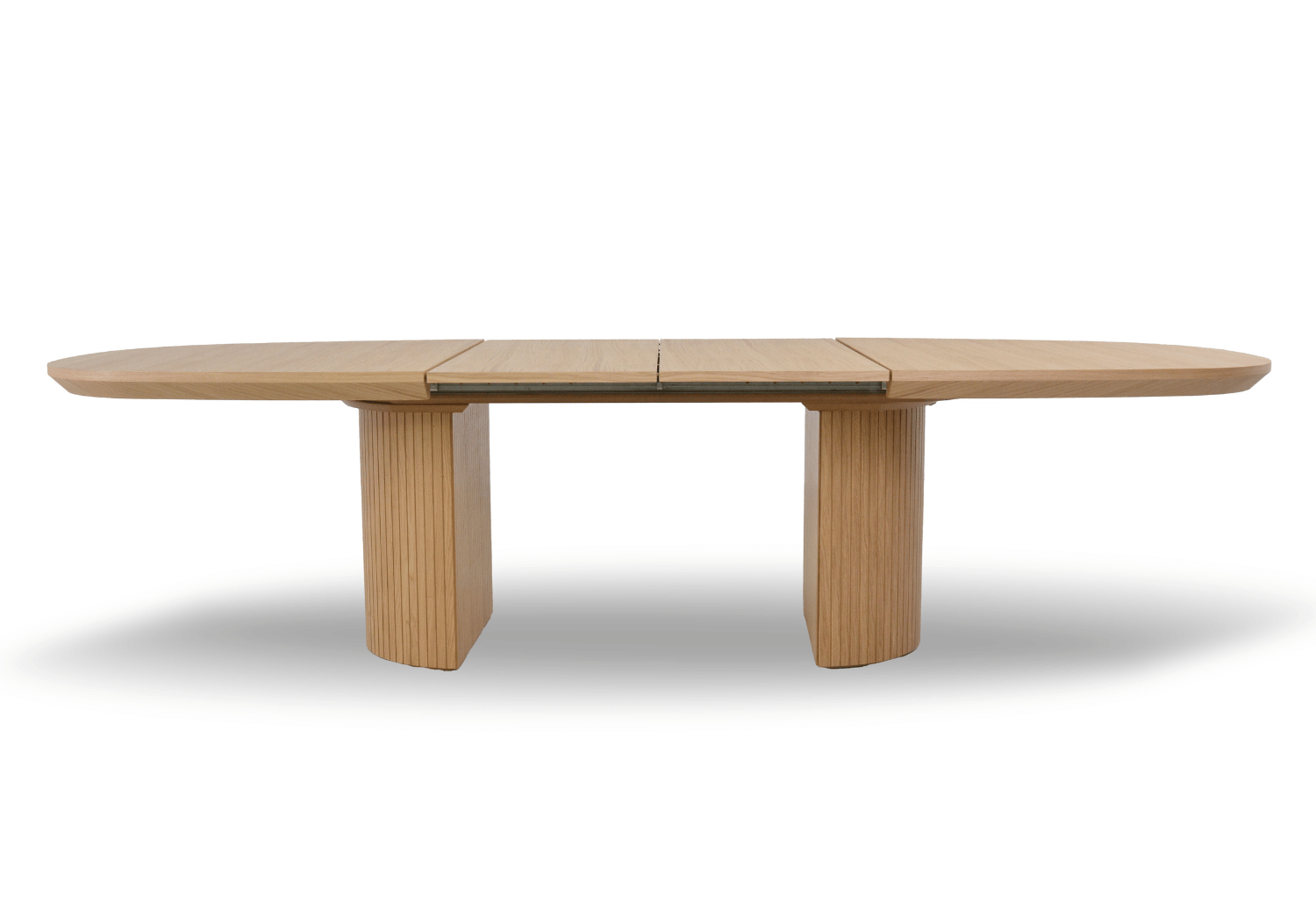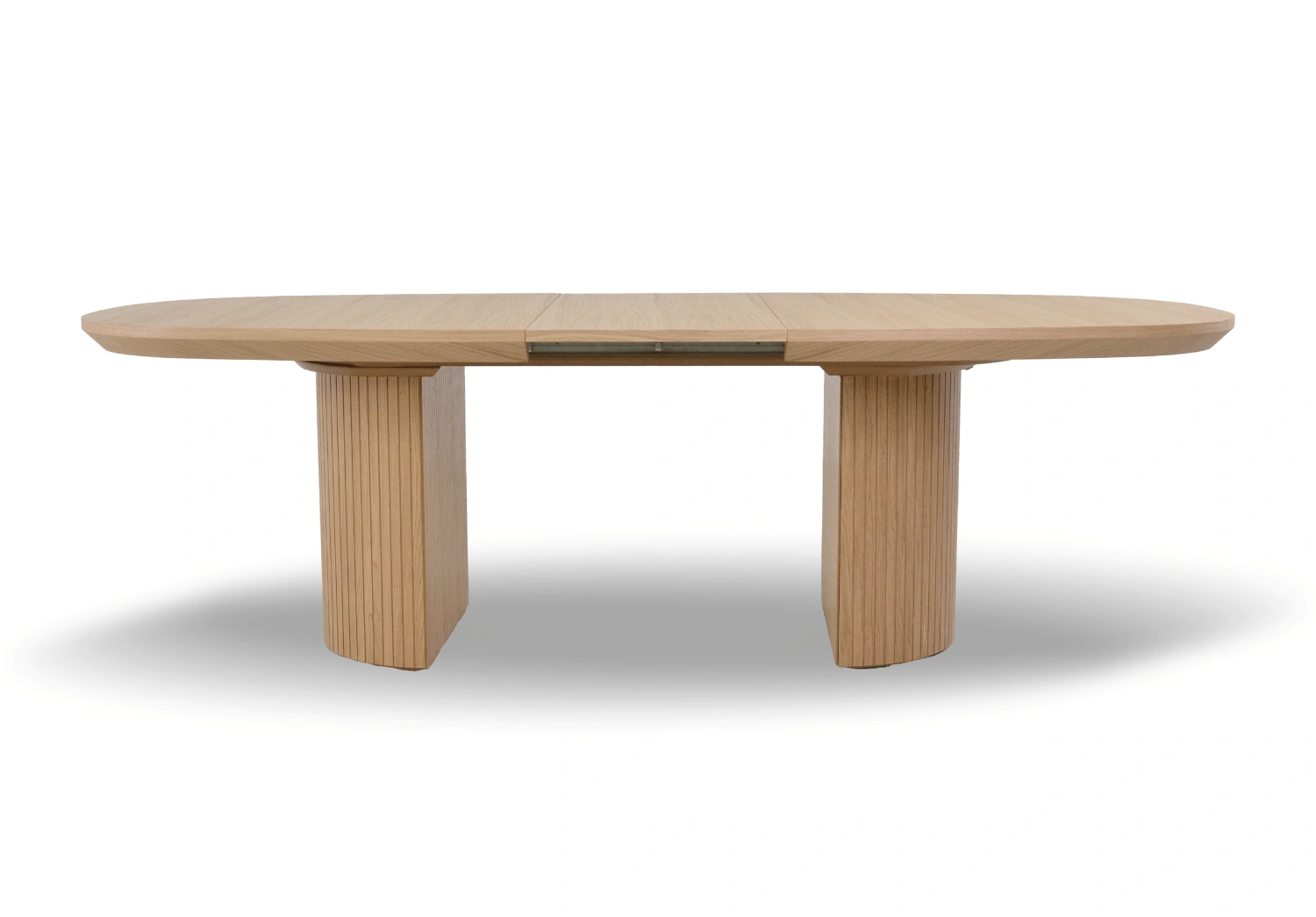 Stół T72 rozkładany na ryflowanej nodze – elegancja dębu i pełna funkcjonalność