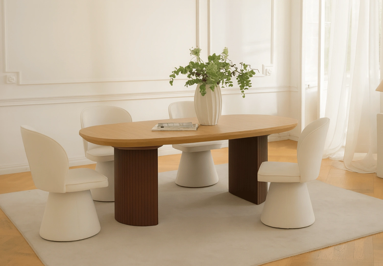 Stół T72 to perfekcyjny balans między designem a funkcjonalnością. Jego kształt i wykończenie sprawiają, że pasuje zarówno do wnętrz nowoczesnych, jak i bardziej klasycznych. Naturalny dąb i ryflowane nogi nadają mu elegancji, podczas gdy rozkładany blat zwiększa jego praktyczność — szczególnie gdy potrzebujesz więcej miejsca. Taki stół będzie świetnym elementem jadalni, salonu czy przestrzeni śniadaniowej, dając komfort użytkowania niezależnie od okoliczności.