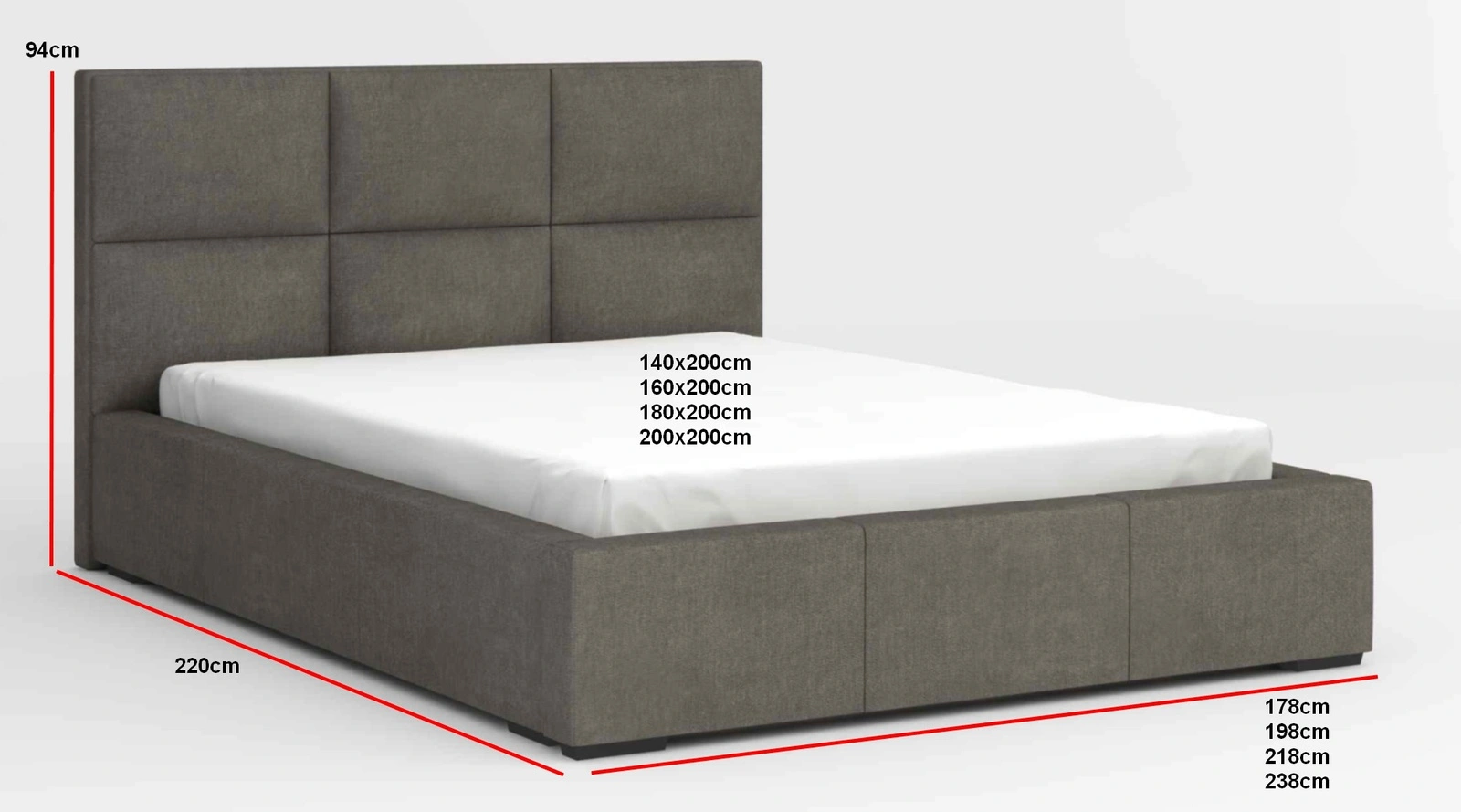 PALMA stylowe łóżko sypialniane w czterech wymiarach z pikowanym zagłówkiem