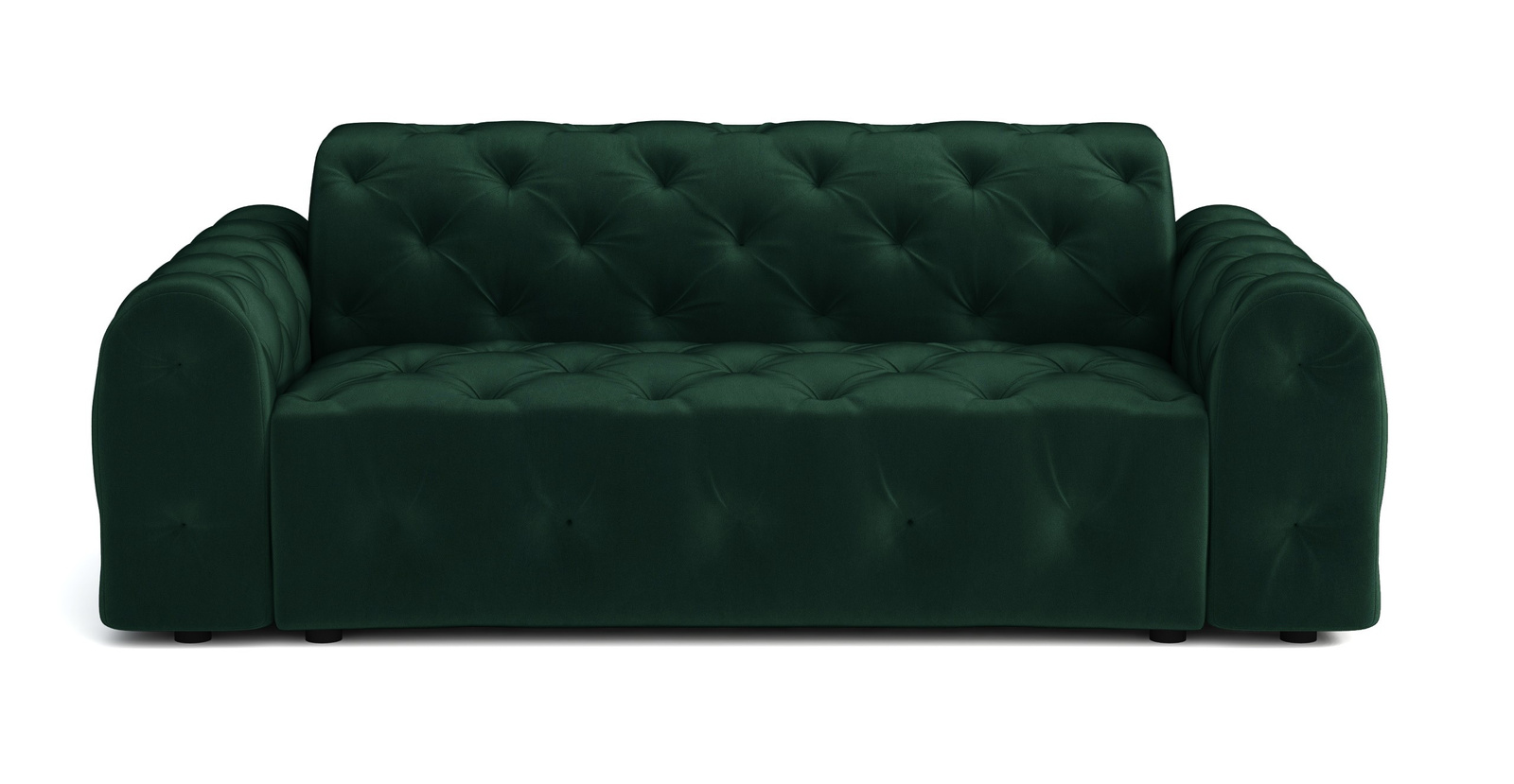 Wzór pikowania składa się z głęboko osadzonych guzików, które tworzą eleganckie, romboidalne zagłębienia na powierzchni tapicerki.