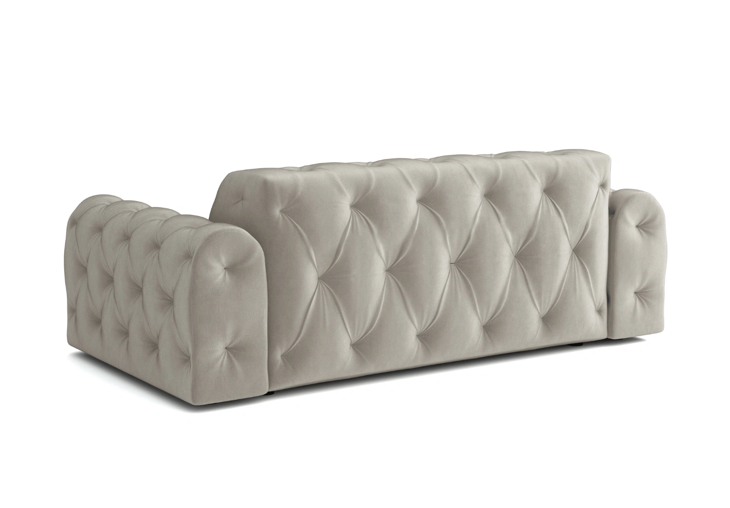 Głębokie pikowania z ozdobnymi guzikami tworzą eleganckie, romboidalne zagłębienia na powierzchni tapicerki.