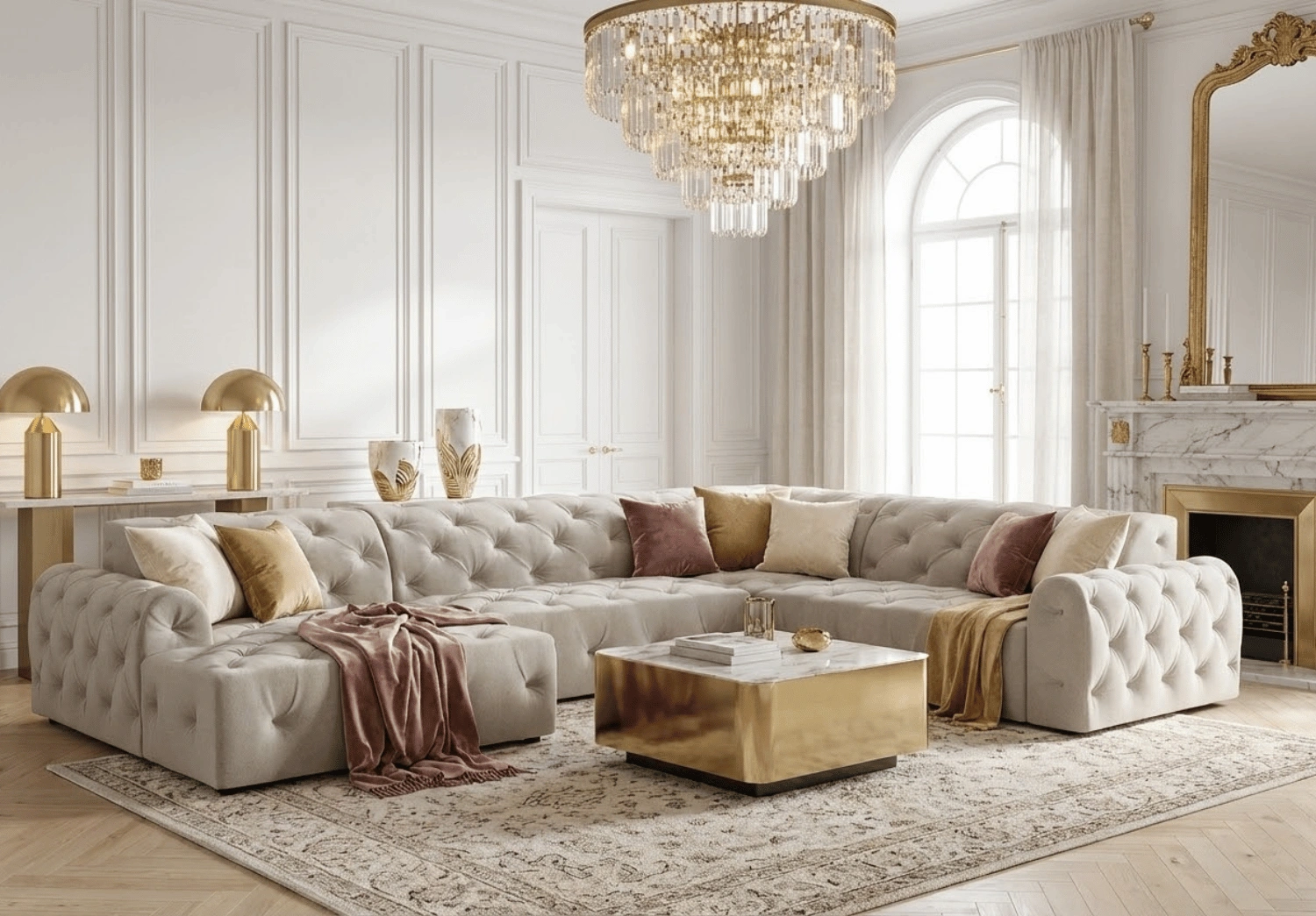 Luksusowy styl glamour z pikowaniem chesterfield