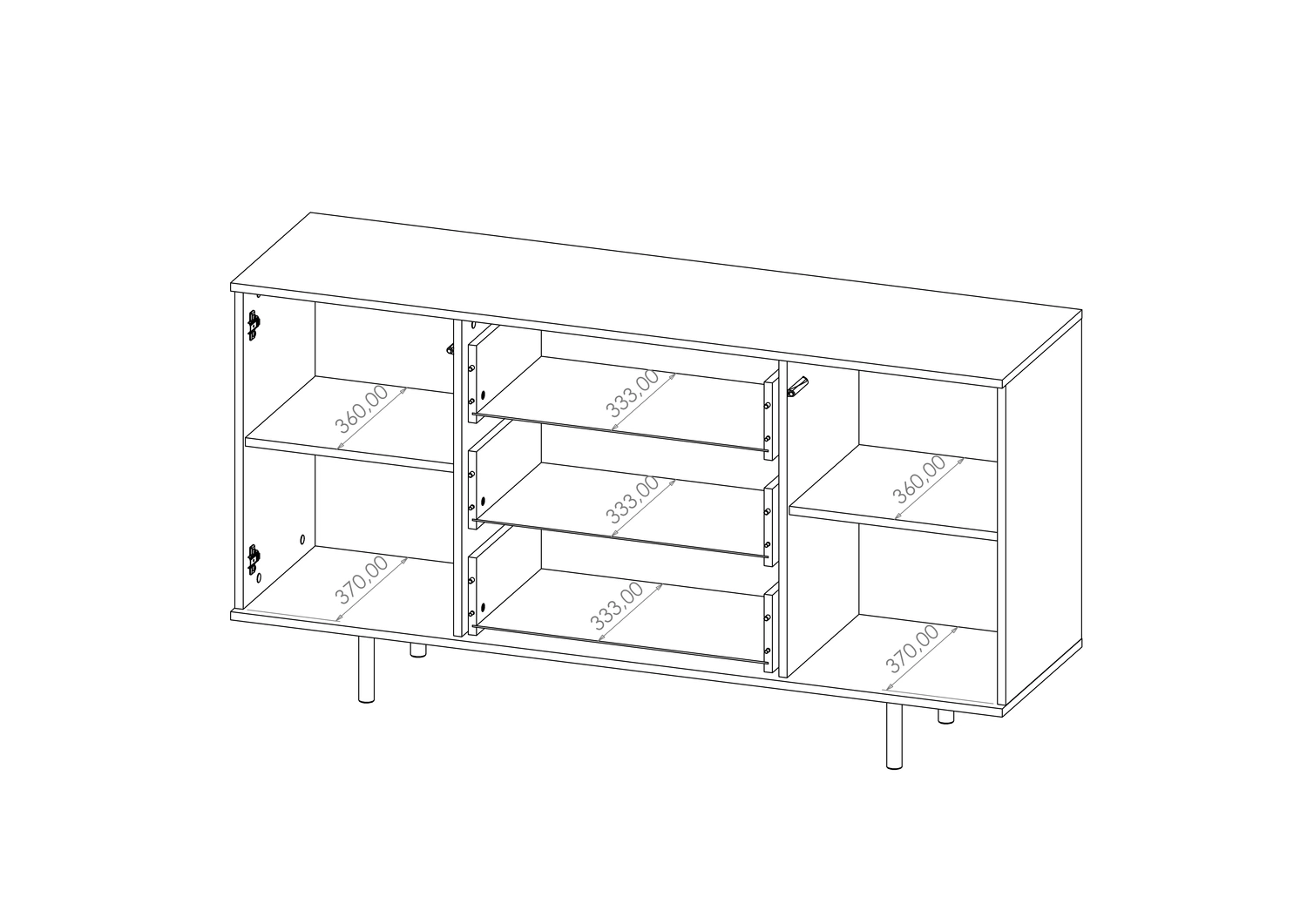 2 szafki boczne z półkami – idealne na większe przedmioty, zastawę czy dokumenty.