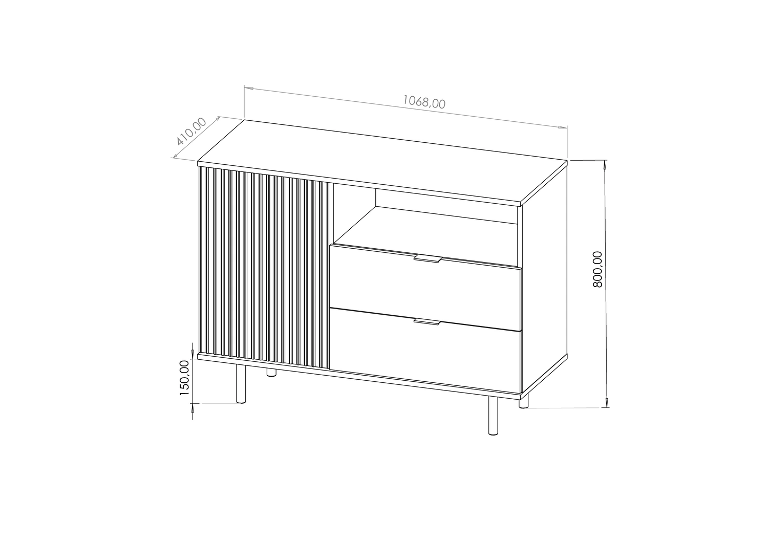 Aurora Mini komoda z pionowymi żłobieniami