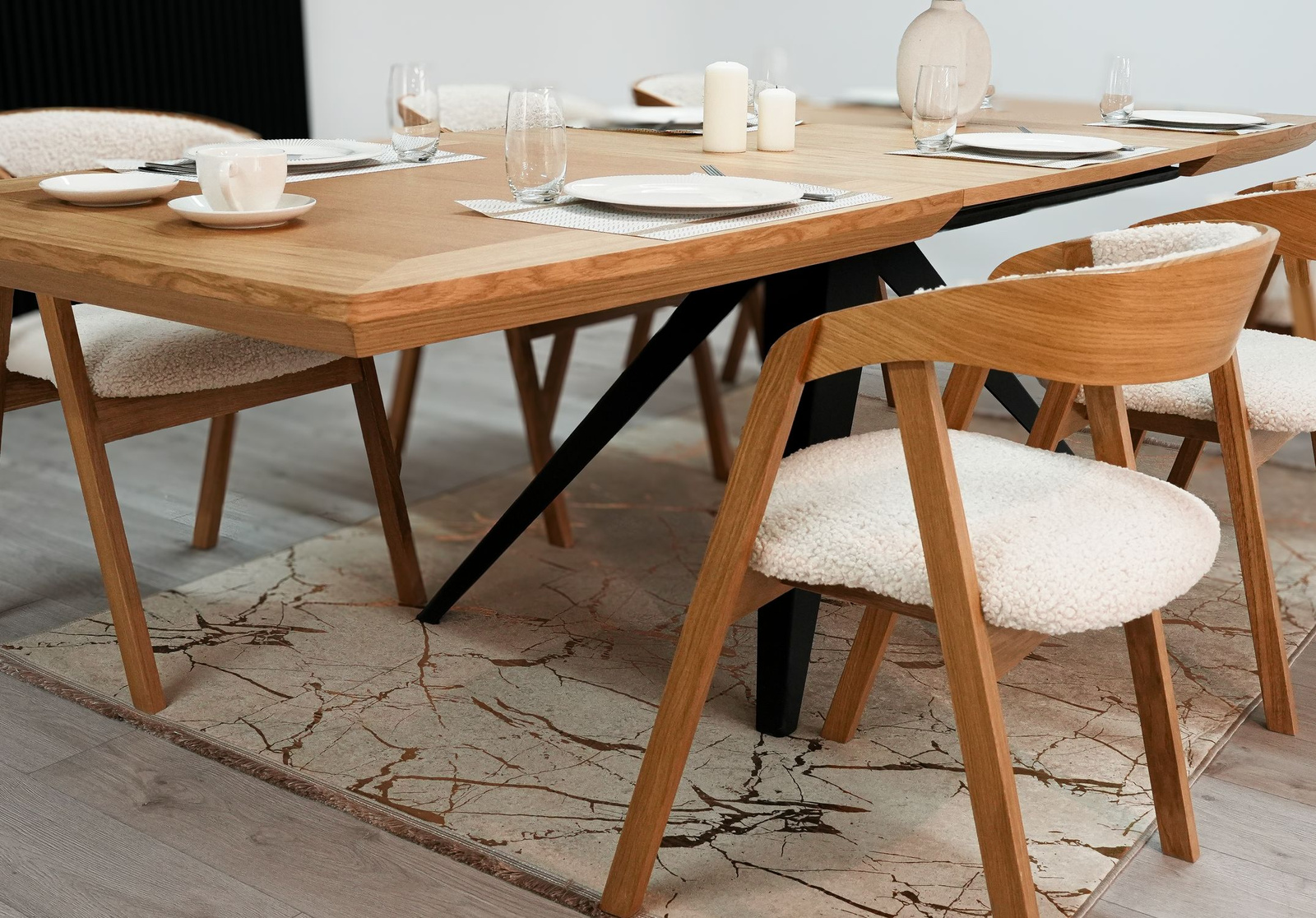 - blat: płyta meblowa MDF charakteryzująca się wysoką odpornością fornirowana naturalną okleiną dębową.