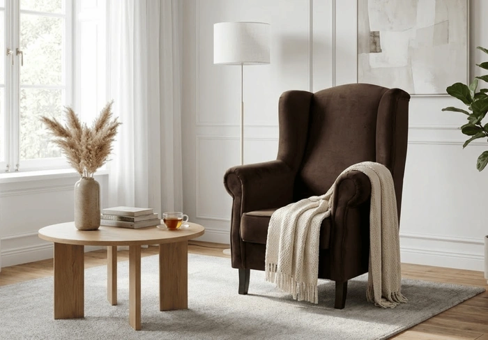 Fotel LONDYN wyróżnia się klasyczną sylwetką typu uszak, która nigdy nie wychodzi z mody. Subtelne linie, harmonijne proporcje oraz eleganckie drewniane nóżki z drewna bukowego nadają meblowi lekkości i ponadczasowego charakteru. Uniwersalny design sprawia, że fotel świetnie komponuje się zarówno z wnętrzami klasycznymi, jak i nowoczesnymi czy skandynawskimi.