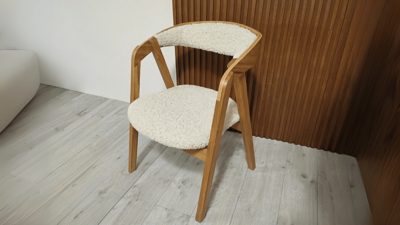 - Krzesło DODO z tkaniną Lambi – wyjątkowo miękka i przytulna tapicerka typu „baranek”, która dodaje wnętrzu ciepła i przytulności. Idealne do nowoczesnych, skandynawskich i boho aranżacji.