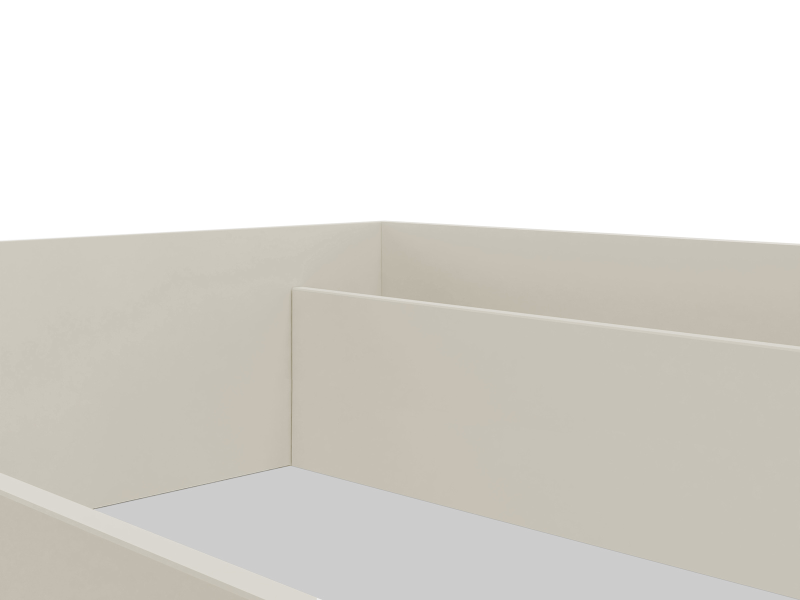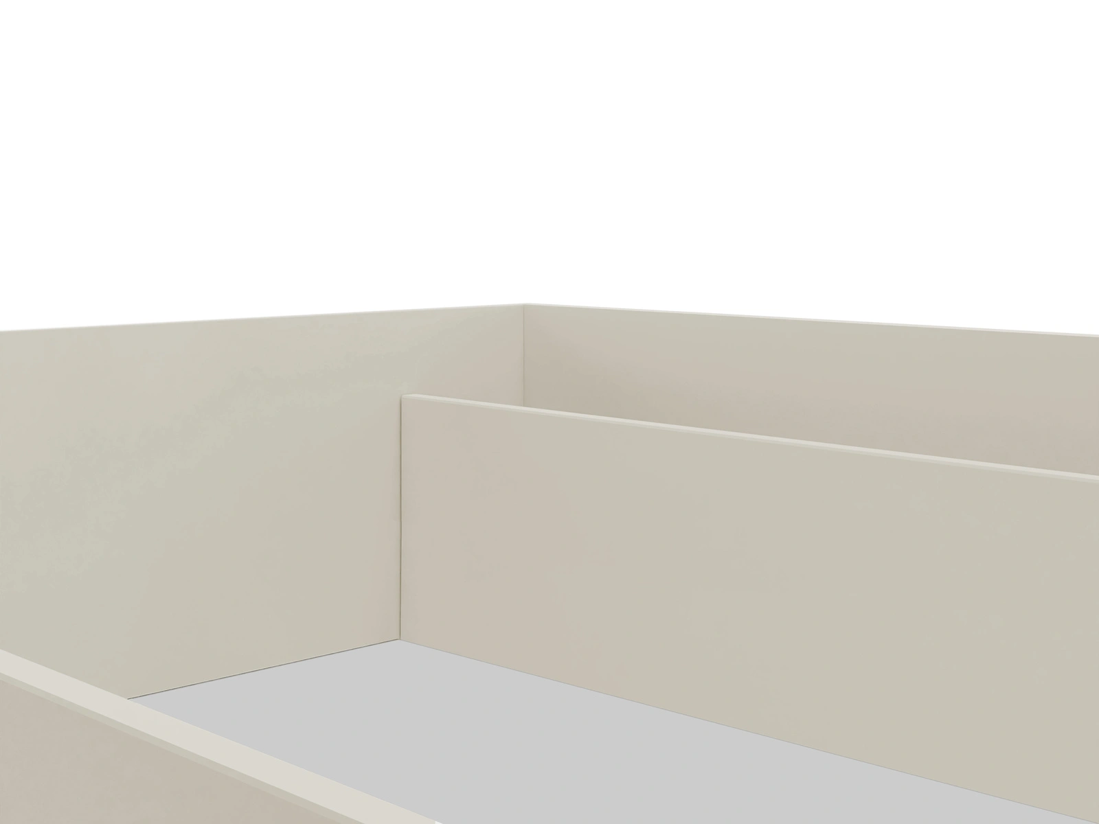 Łóżko wzmocnione poprzez 3 poprzeczne podpory tworzące dwie funkcjonalne przegrody wewnątrz łóżka.