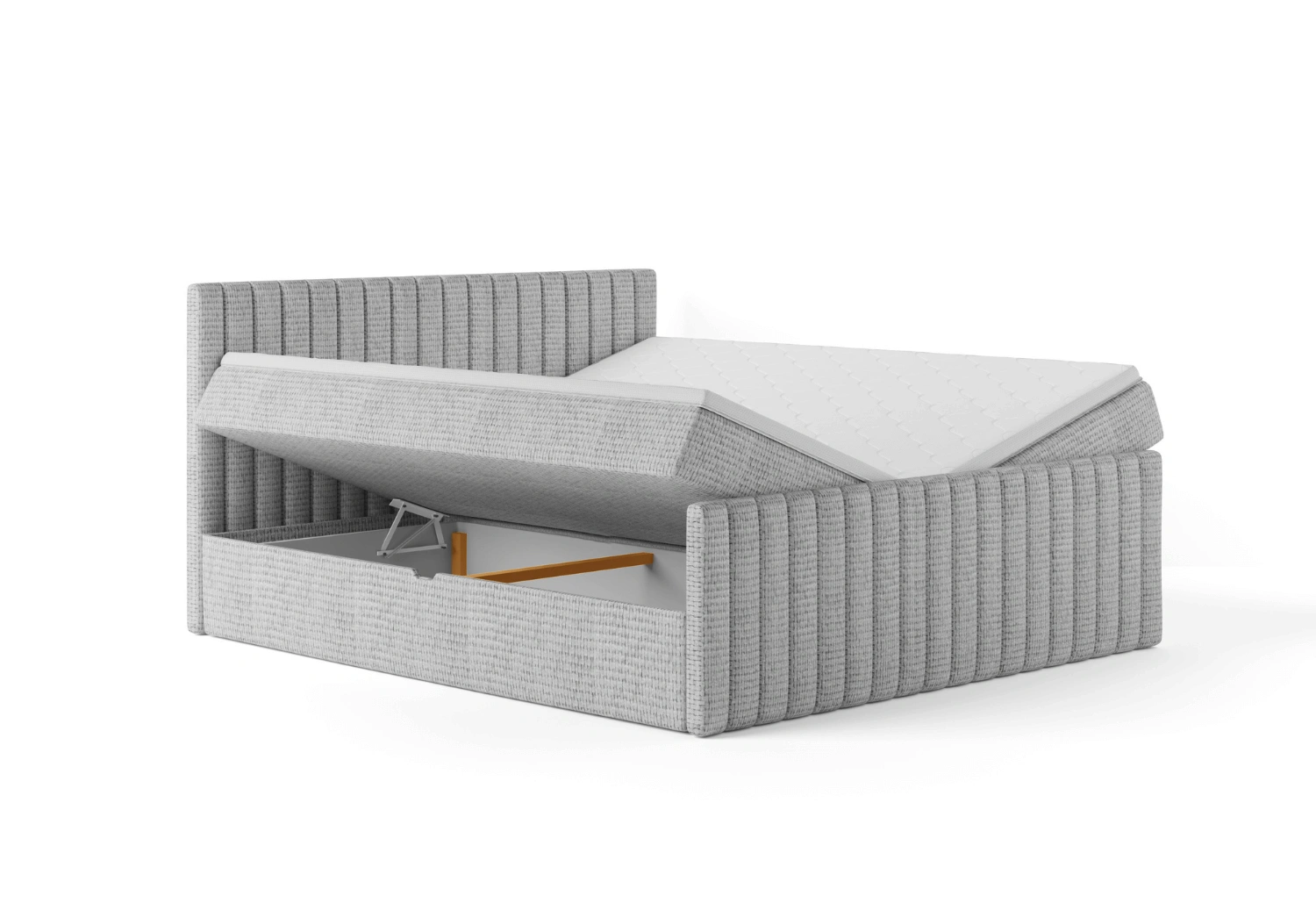 Łóżko HERA to komfortowy model typu boxspring, który łączy hotelową wygodę z eleganckim wyglądem. Charakterystyczne tapicerowanie w pionowe pasy podkreśla nowoczesny styl, a warstwowa konstrukcja z materacem i topperem zapewnia doskonałe podparcie podczas snu. To idealny wybór dla osób, które szukają stabilności, estetyki i wysokiej jakości wykonania.