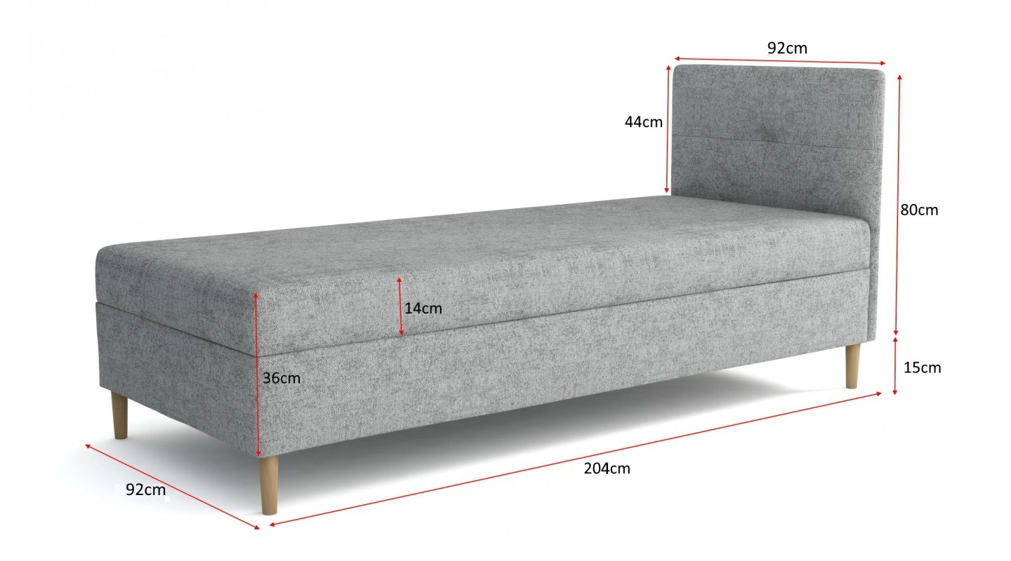 To pojedyncze łóżko, wyposażone w miękki zagłówek i praktyczny pojemnik na pościel, zapewnia nie tylko wygodny sen, ale także dodatkowe miejsce do przechowywania.