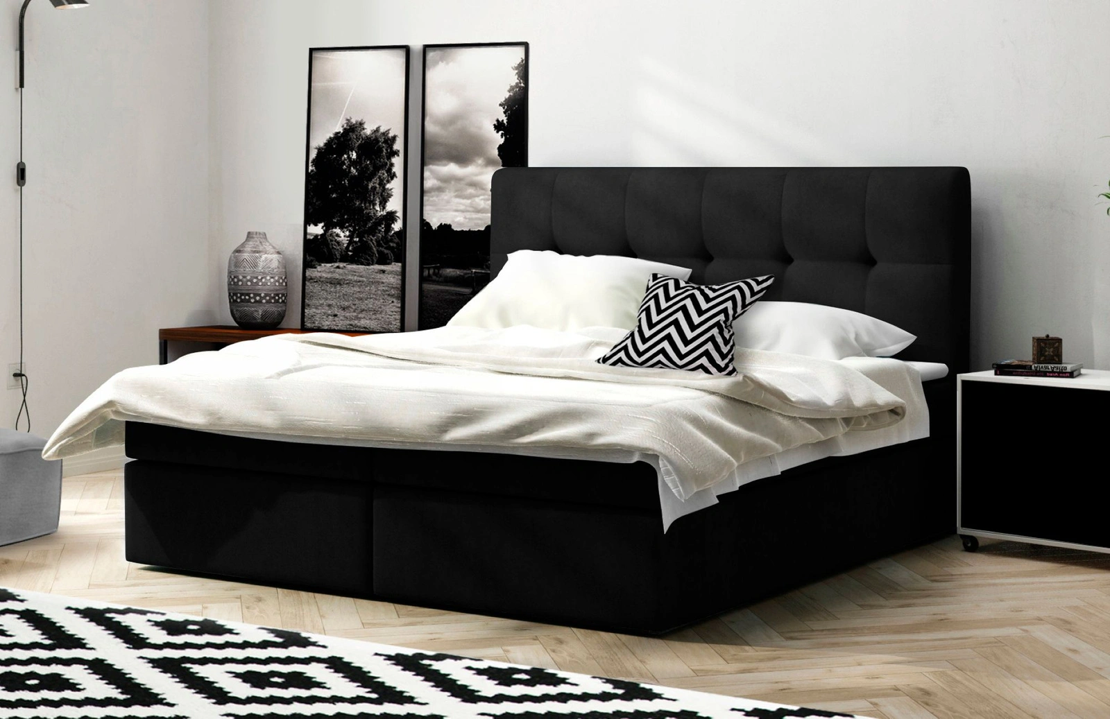 Łóżko kontynentalne boxspring z topperem i pojemnikami – maksymalna wygoda i funkcjonalność