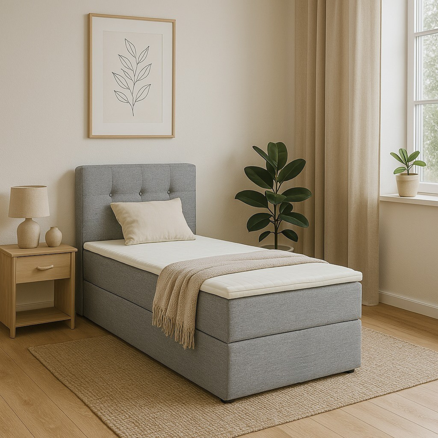 Łóżko kontynentalne boxspring z topperem i pojemnikami – maksymalna wygoda i funkcjonalność
