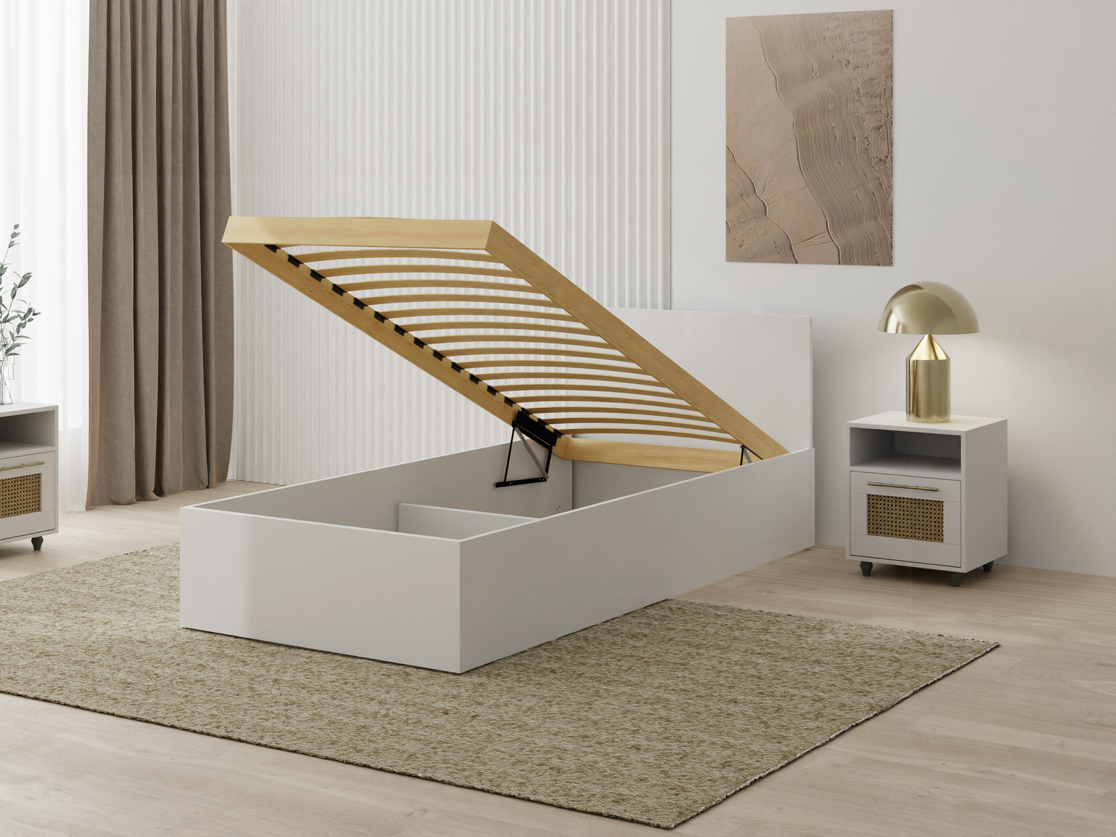 ATENA- nowoczesne łóżko jednoosobowe, drewniane z pojemnikiem na pościel