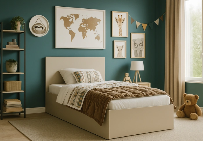 - Minimalistyczne łóżko jednoosobowe w kolorze kaszmir to idealne rozwiązanie do małej sypialni, pokoju młodzieżowego lub gościnnego. Prosta forma i uniwersalny design sprawiają, że łatwo dopasujesz je do każdego wnętrza.