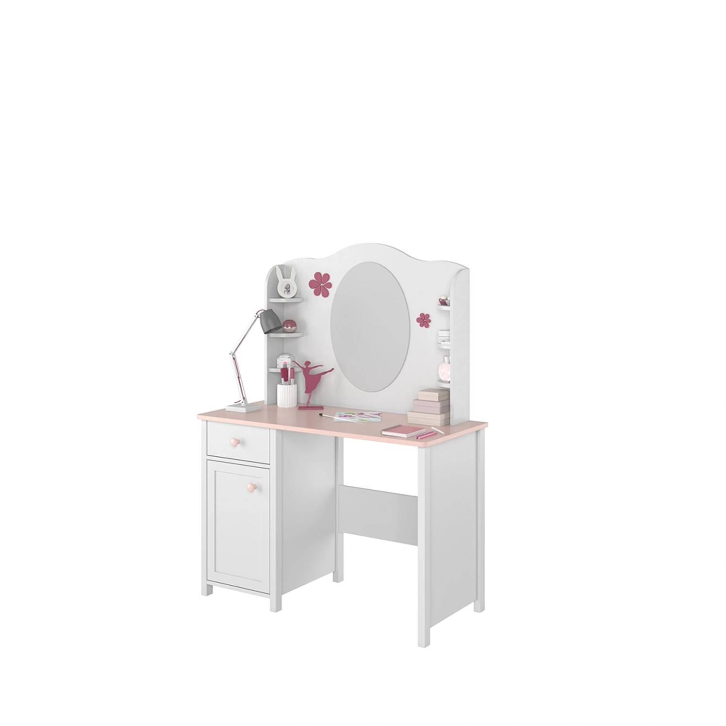 Nowoczesny, funkcjonalny i wyjątkowo lekki mebel stworzony z myślą o młodzieżowych aranżacjach. Jej kompaktowy rozmiar, aż 6 półek oraz subtelna kolorystyka – biały alpejski z różowymi akcentami – sprawiają, że toaletka idealnie sprawdzi się w pokoju każdej młodej osoby.