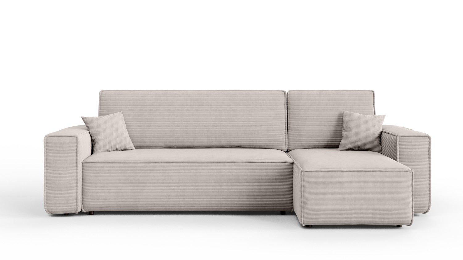 Stylowy narożnik Denis w kształcie litery L to połączenie funkcjonalności, wygody i eleganckiego designu. Dzięki swojej uniwersalnej konstrukcji może być montowany zarówno w wersji lewostronnej, jak i prawostronnej, co pozwala dopasować go idealnie do każdego wnętrza.