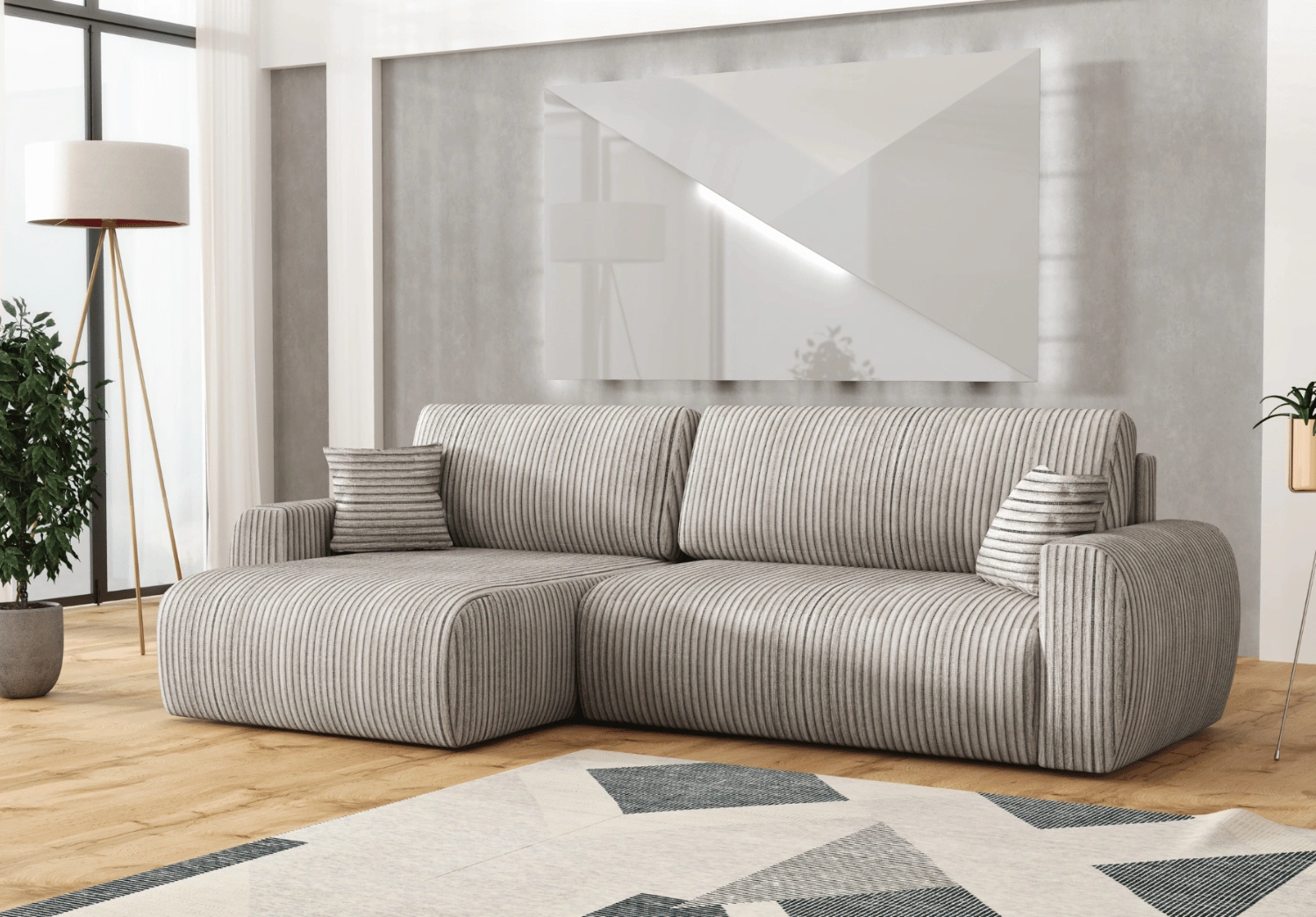 To idealny wybór dla osób, które cenią sobie połączenie stylu i wygody. Narożnik DORATO nie tylko zachwyca eleganckim wyglądem, ale również posiada funkcję spania, co czyni go niezwykle praktycznym rozwiązaniem do codziennego użytku. Jego nowoczesna linia i dopracowane detale podkreślą charakter każdego wnętrza – od klasycznego po minimalistyczne.