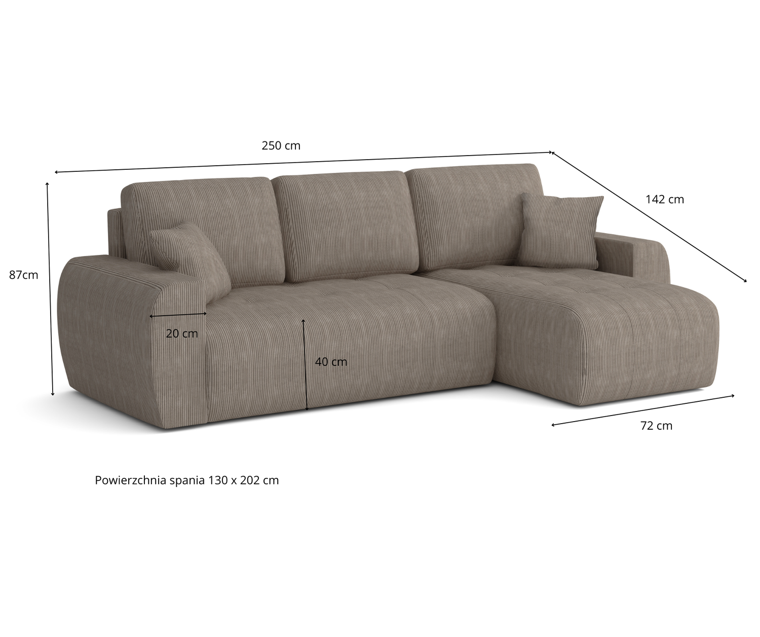 Narożnik lewostronny z funkcją spania L MOET mini 250x142 cm