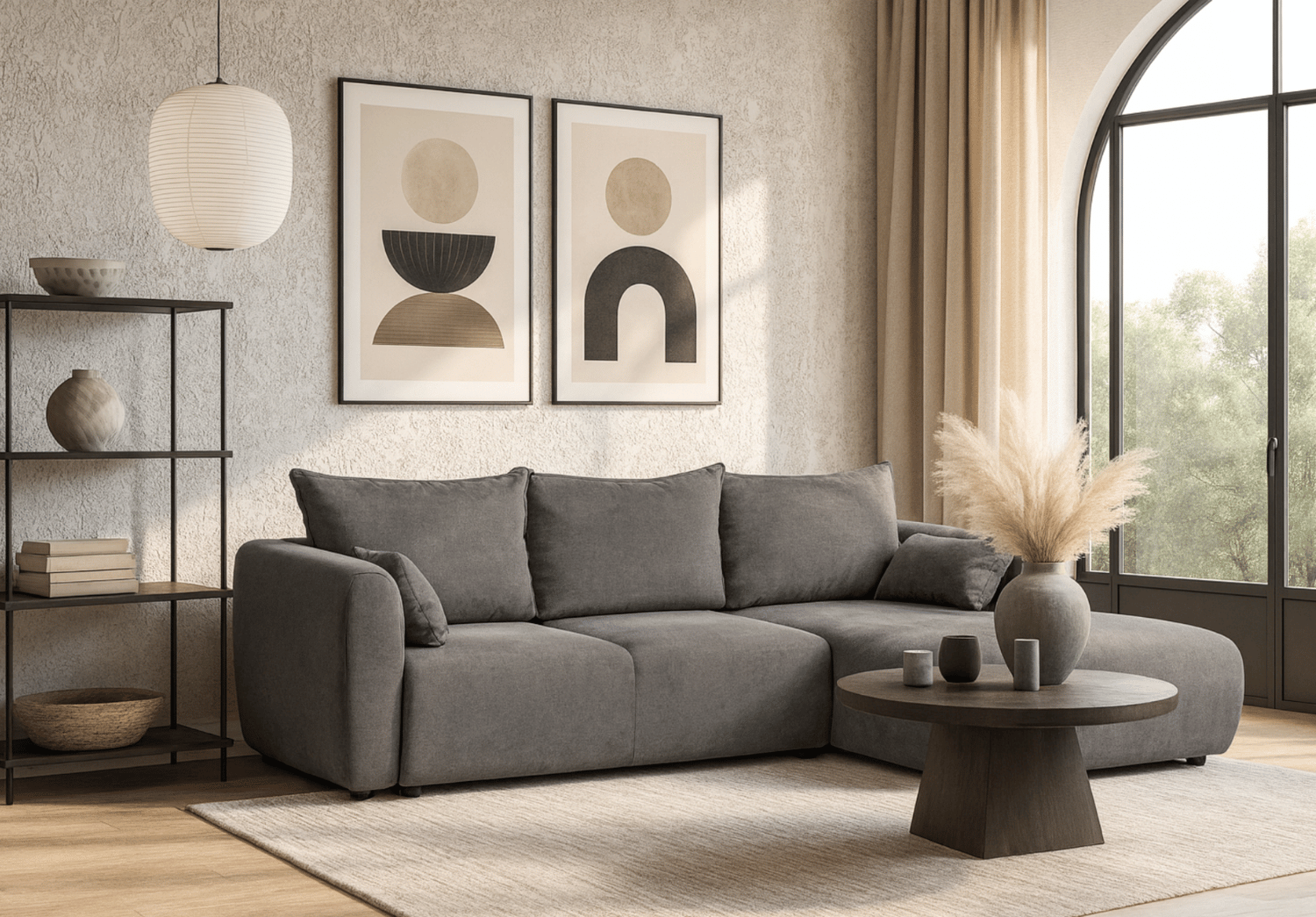 Narożnik z funkcją spania i pojemnikiem na pościel LUNA – nowoczesny styl i wygoda każdego dnia