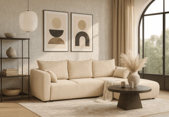 Narożnik z funkcją spania i pojemnikiem na pościel LUNA – nowoczesny styl i wygoda każdego dnia