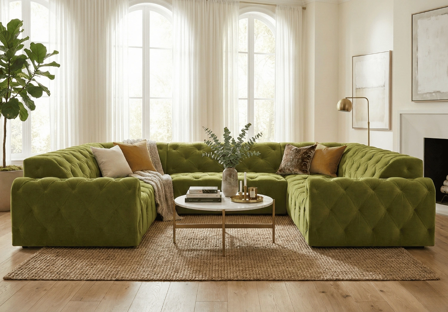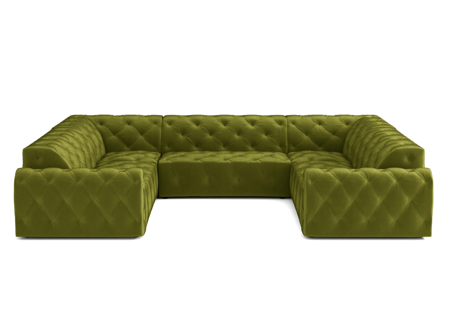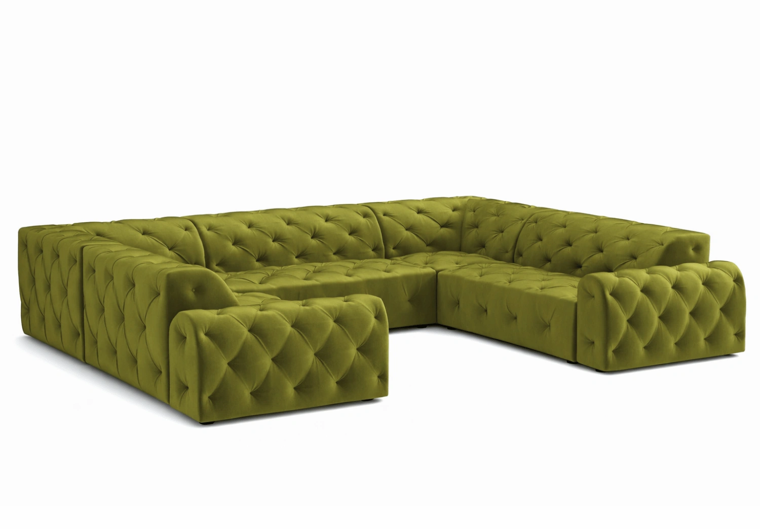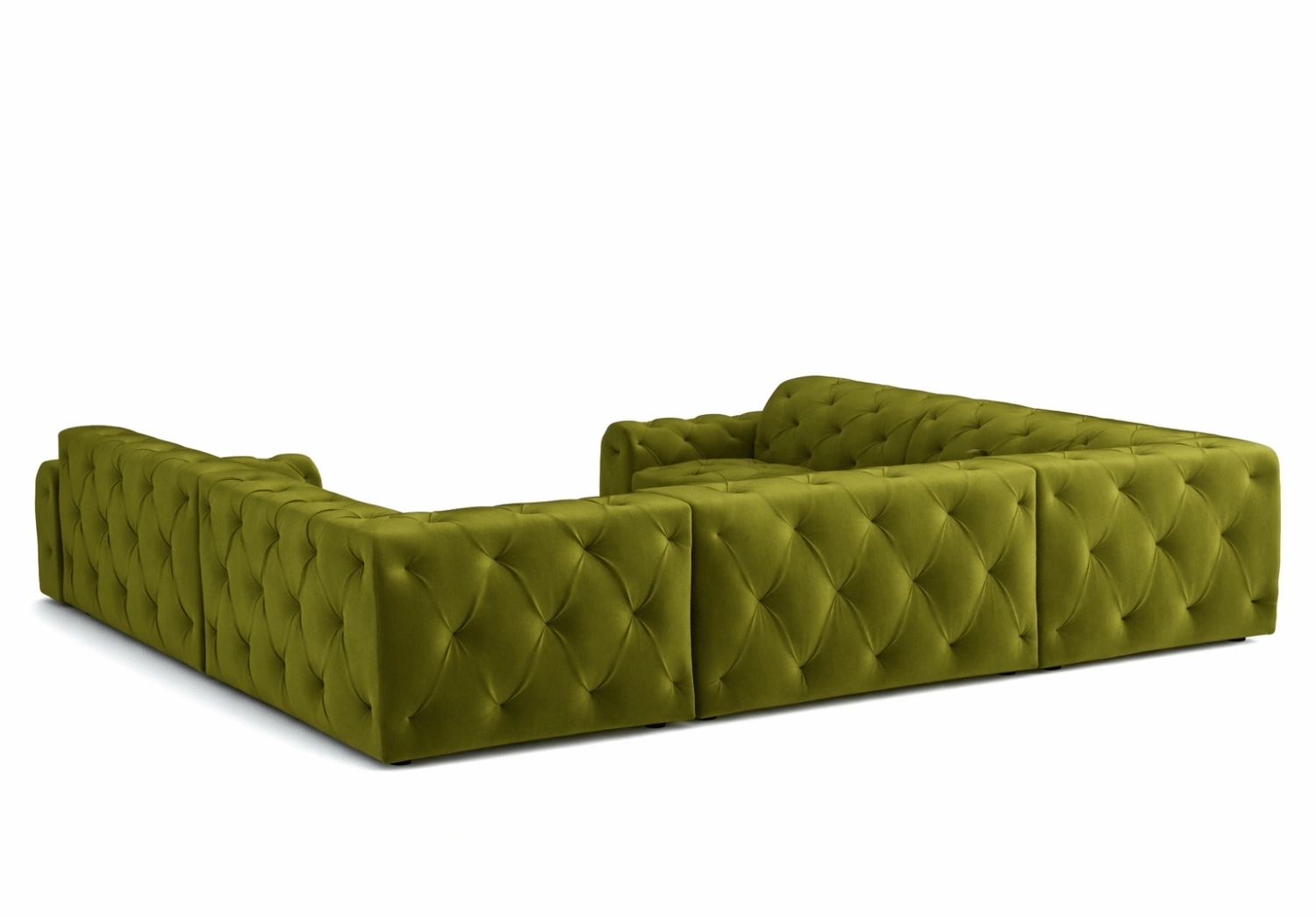 • Głębokie pikowania z ozdobnymi guzikami tworzą eleganckie, romboidalne zagłębienia na powierzchni tapicerki.