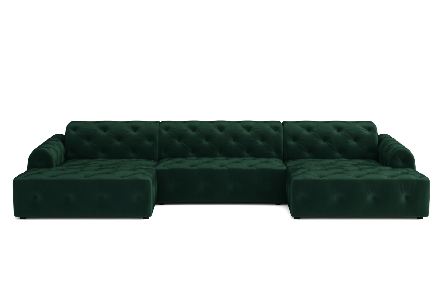 • Głębokie pikowania z ozdobnymi guzikami tworzą eleganckie, romboidalne zagłębienia na powierzchni tapicerki.
