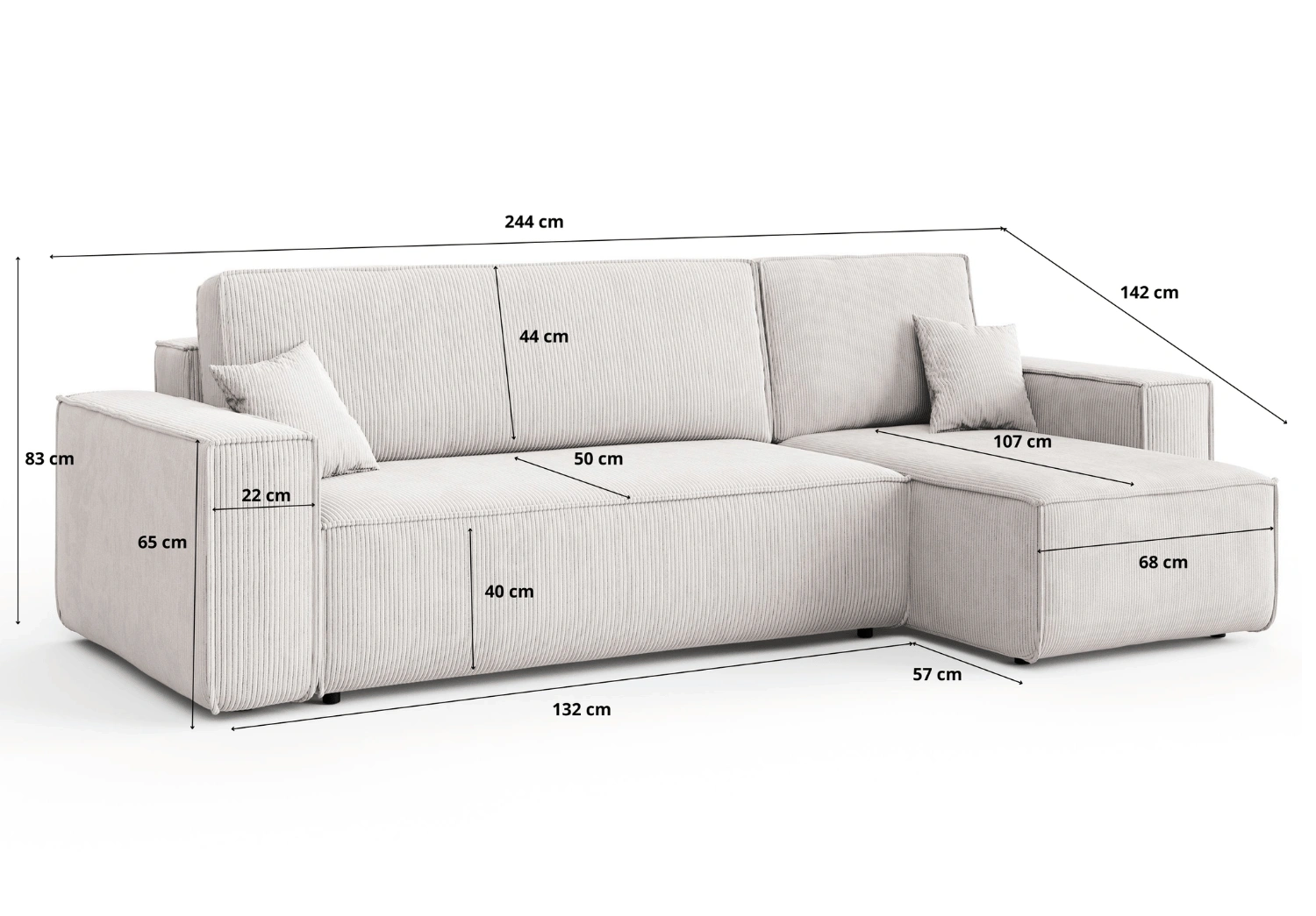 Narożnik uniwersalny z funkcją spania DENIS 244x142 cm