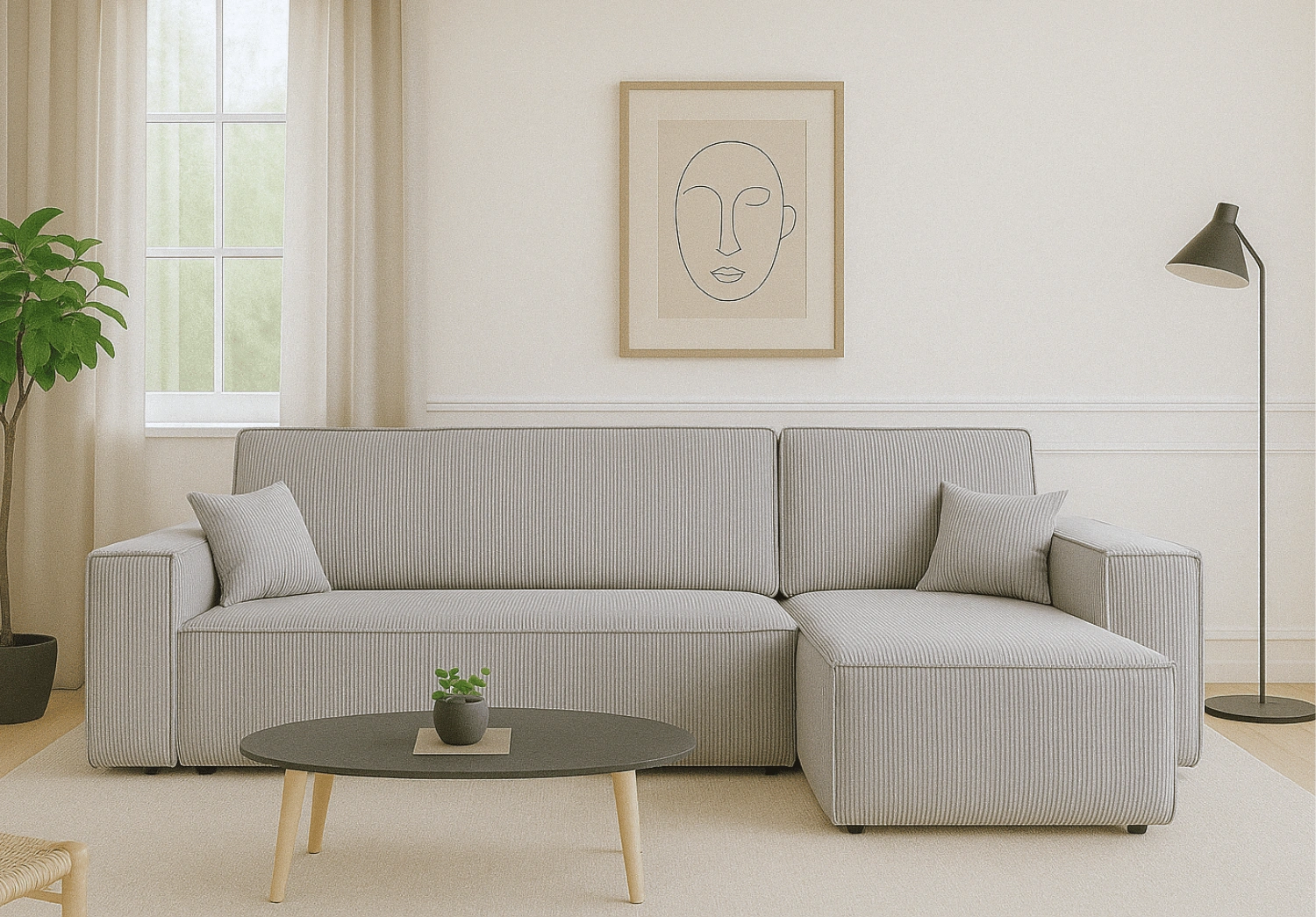 Narożnik DENIS to stylowy i funkcjonalny mebel w kształcie litery L, który doskonale łączy komfort codziennego użytkowania z eleganckim wyglądem. Dzięki uniwersalnej konstrukcji możesz go ustawić zarówno w wersji lewo-, jak i prawostronnej, dopasowując idealnie do swojego wnętrza. To idealny wybór do salonu, pokoju dziennego czy mieszkania typu open space.