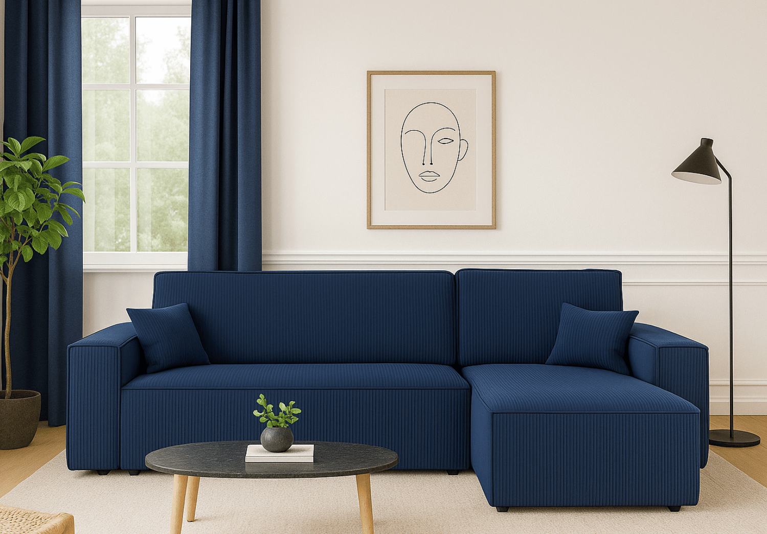 Narożnik DENIS to stylowy i funkcjonalny mebel w kształcie litery L, który doskonale łączy komfort codziennego użytkowania z eleganckim wyglądem. Dzięki uniwersalnej konstrukcji możesz go ustawić zarówno w wersji lewo-, jak i prawostronnej, dopasowując idealnie do swojego wnętrza. To idealny wybór do salonu, pokoju dziennego czy mieszkania typu open space.