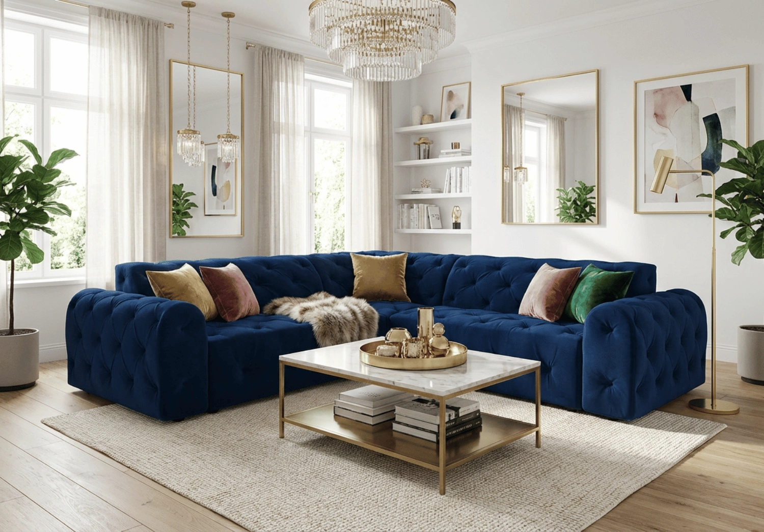 • Luksusowy styl glamour z pikowaniem chesterfield
