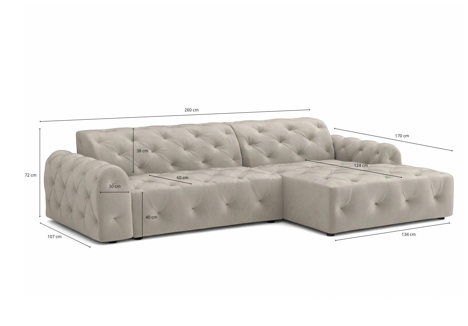 Narożnik z eleganckimi pikowaniami CANDY 260x170 cm