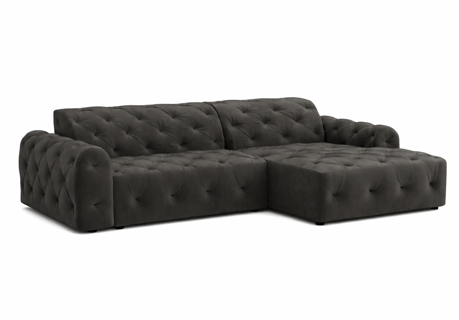 • Głębokie pikowania z ozdobnymi guzikami tworzą eleganckie, romboidalne zagłębienia na powierzchni tapicerki.