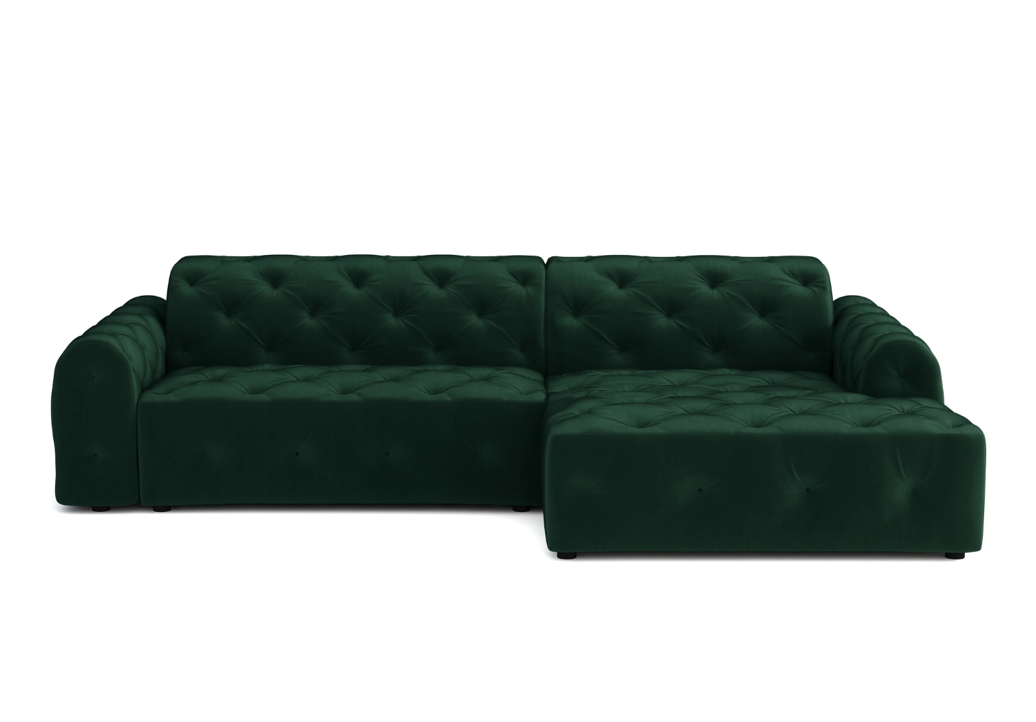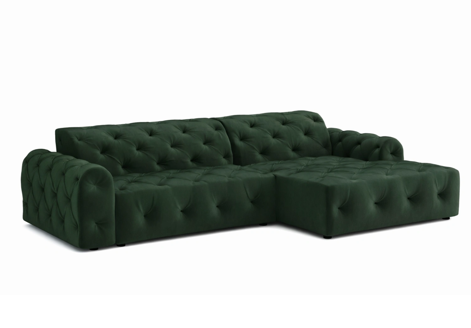 • Głębokie pikowania z ozdobnymi guzikami tworzą eleganckie, romboidalne zagłębienia na powierzchni tapicerki.
