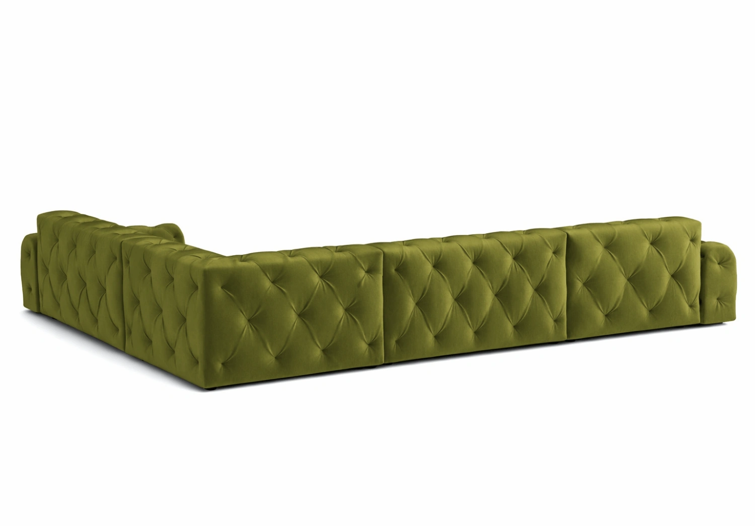 Głębokie pikowania z ozdobnymi guzikami tworzą eleganckie, romboidalne zagłębienia na powierzchni tapicerki.