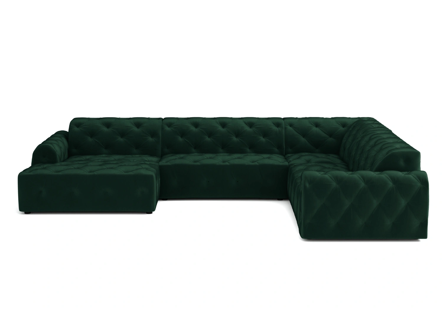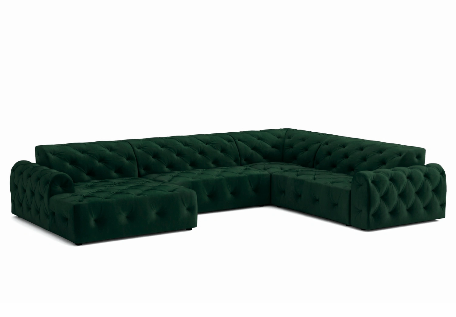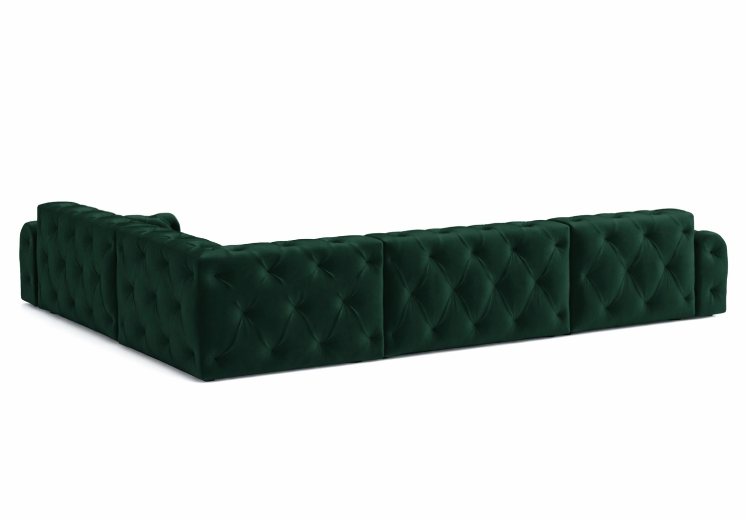 • Głębokie pikowania z ozdobnymi guzikami tworzą eleganckie, romboidalne zagłębienia na powierzchni tapicerki.