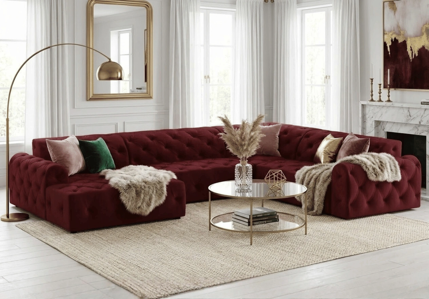 Luksusowy styl glamour z pikowaniem chesterfield