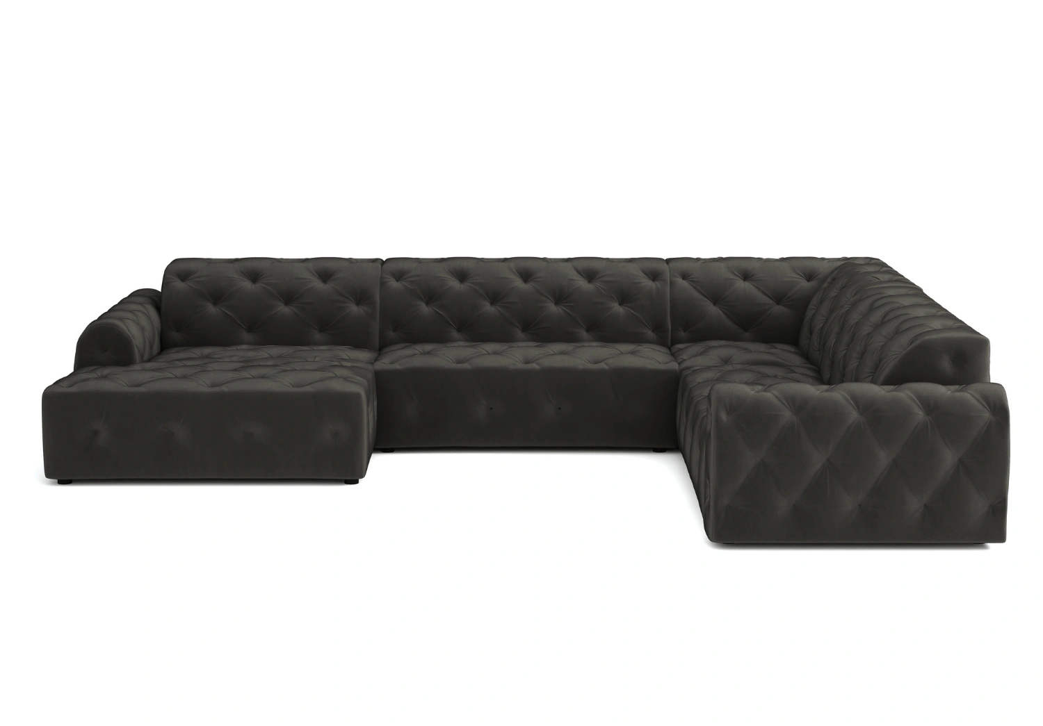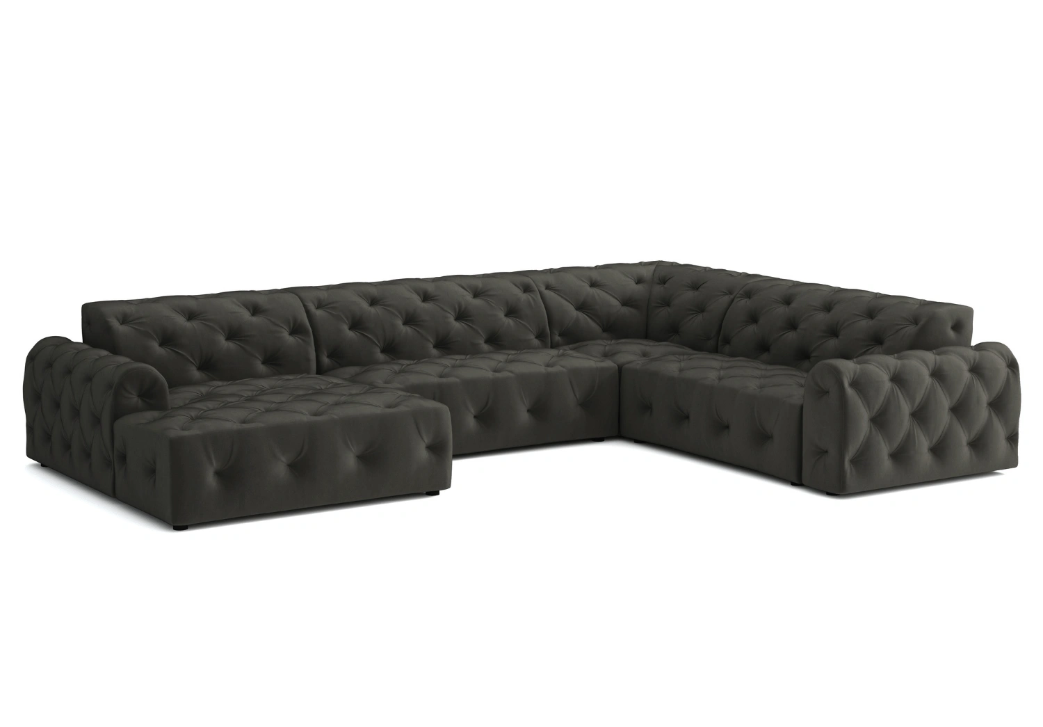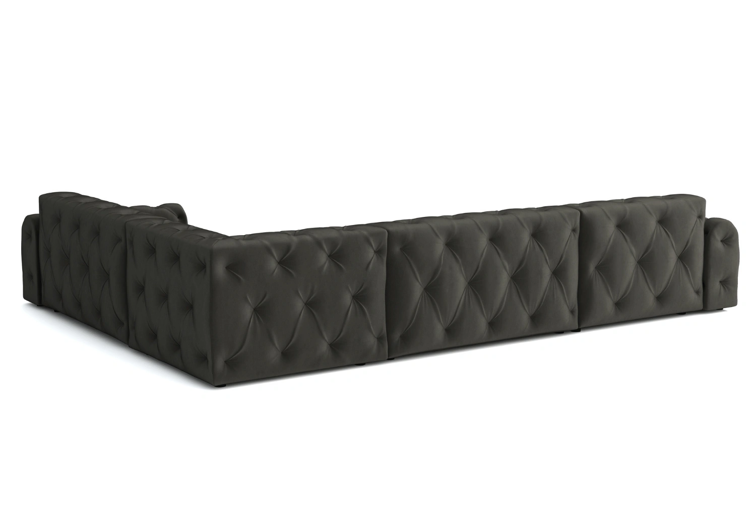 • Głębokie pikowania z ozdobnymi guzikami tworzą eleganckie, romboidalne zagłębienia na powierzchni tapicerki.