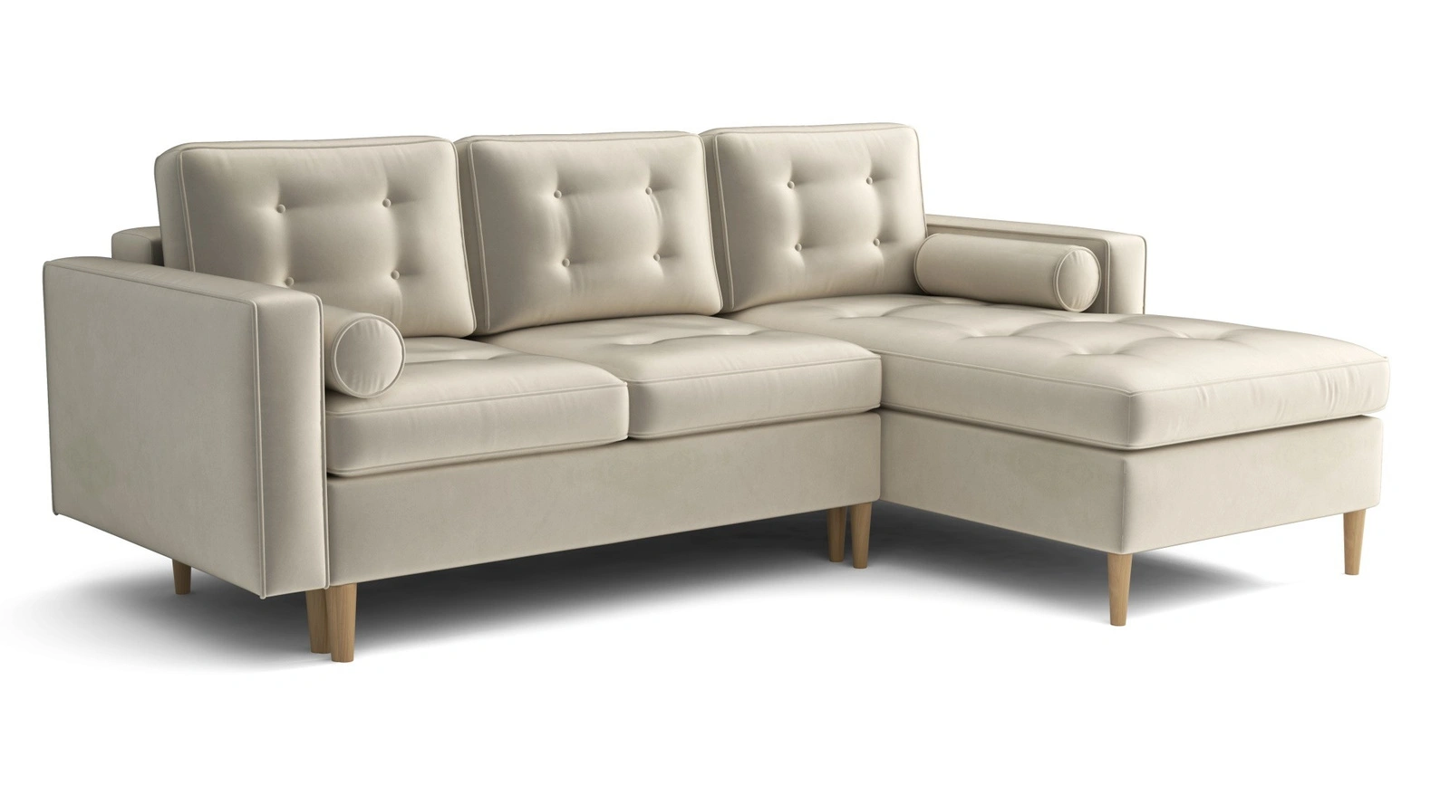 Solidna konstrukcja oraz stabilne nogi zapewniają bezpieczeństwo i trwałość nawet przy intensywnym użytkowaniu. Obicie narożnika wykonano z łatwej w czyszczeniu tkaniny, odpornej na zabrudzenia – to mebel, który łączy estetykę z praktycznością.