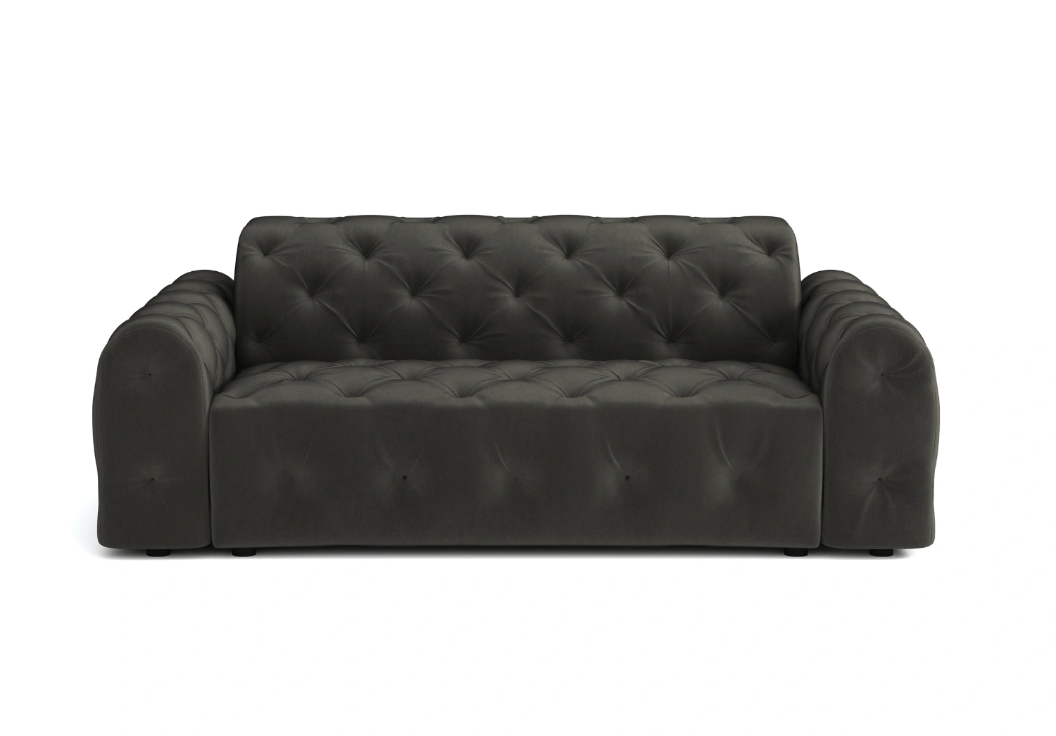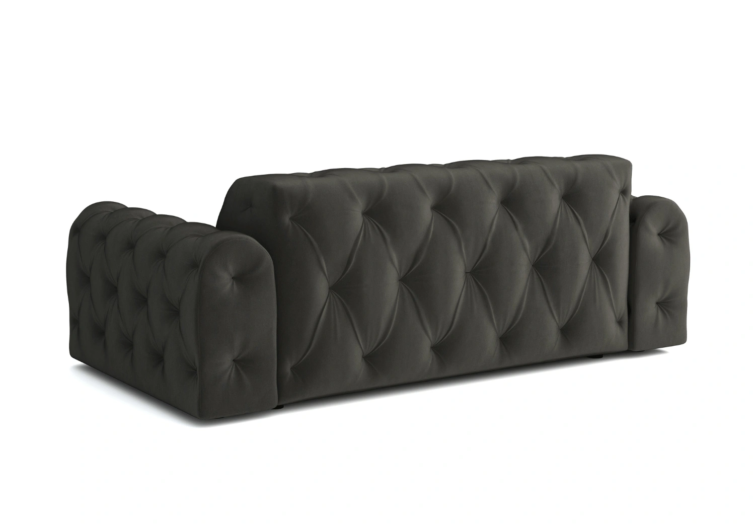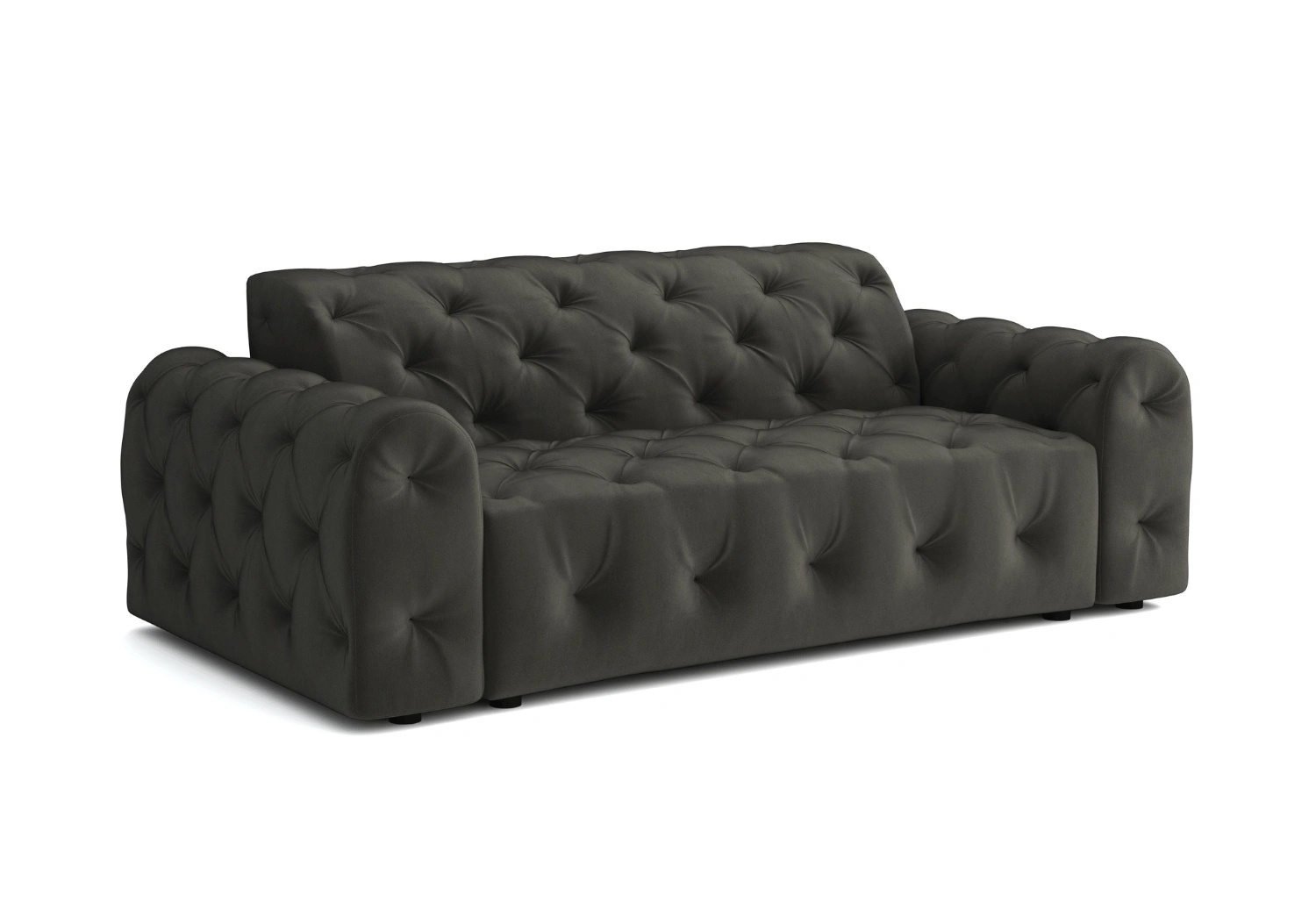 Głębokie pikowania z ozdobnymi guzikami tworzą eleganckie, romboidalne zagłębienia na powierzchni tapicerki.