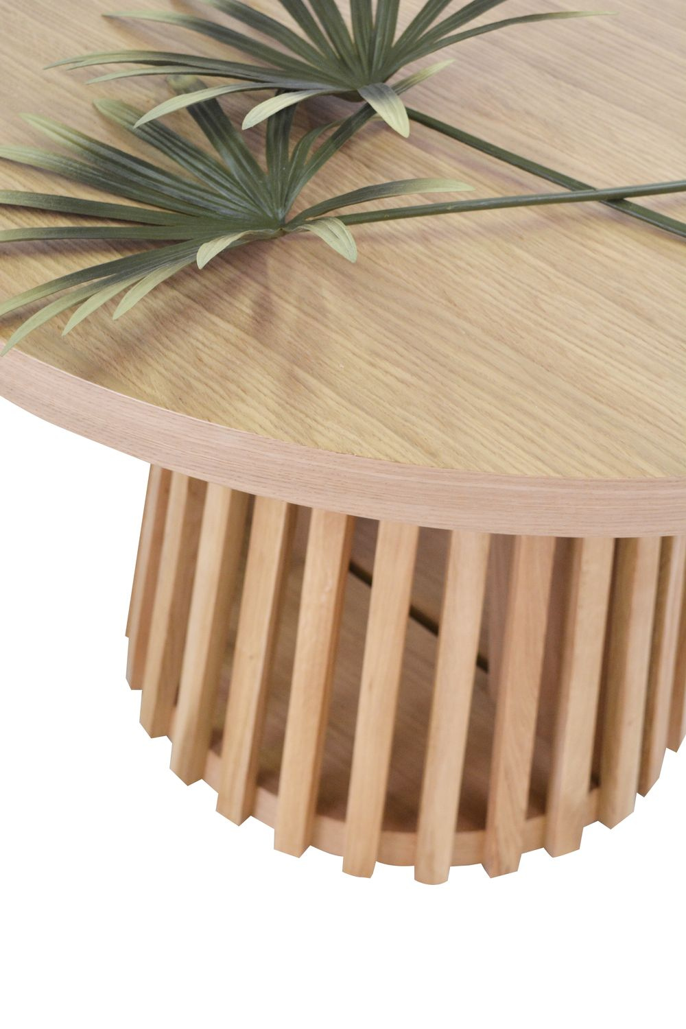 Nogi: Oryginalna konstrukcja z dębowych listewek (lameli) nadaje stołowi unikalny wygląd i lekkość wizualną.