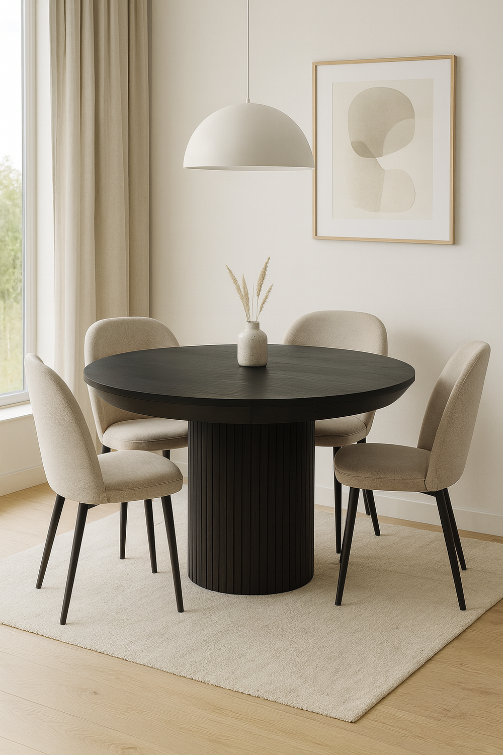 Stół Dariusz okrągły, rozkładany na ryflowanej nodze 130 -180 cm T68