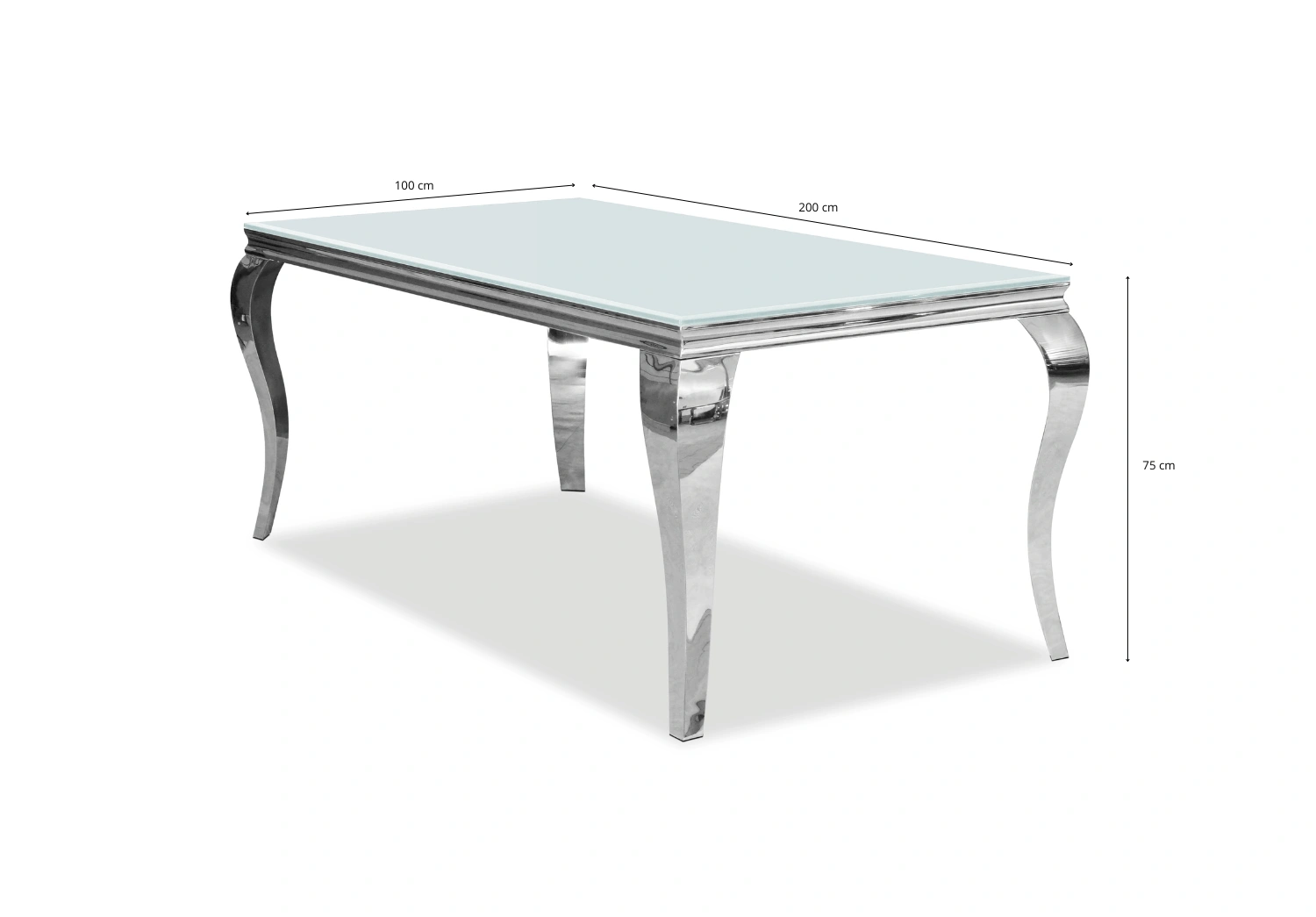 Stół glamour – biały blat, chromowana podstawa 200x100 cm