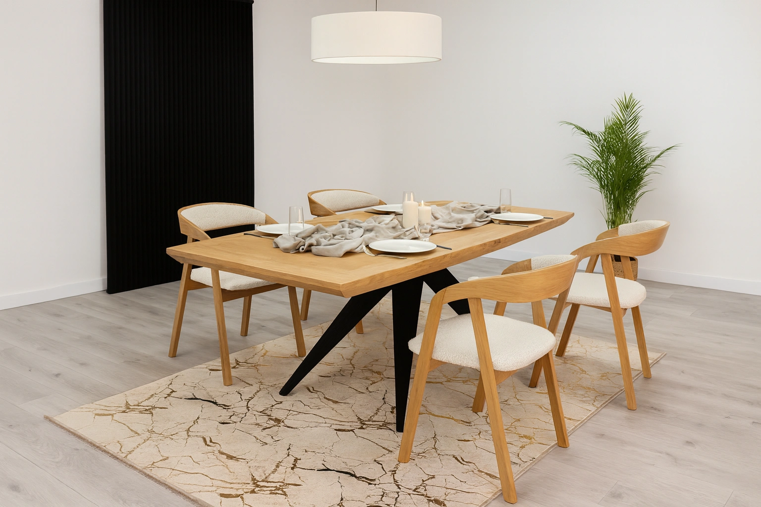 - blat: płyta meblowa MDF charakteryzująca się wysoką odpornością fornirowana naturalną okleiną dębową.
