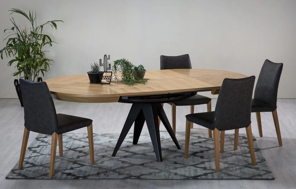 Stół Mietek okrągły rozkładany na metalowej podstawie 120 - 220 cm T49