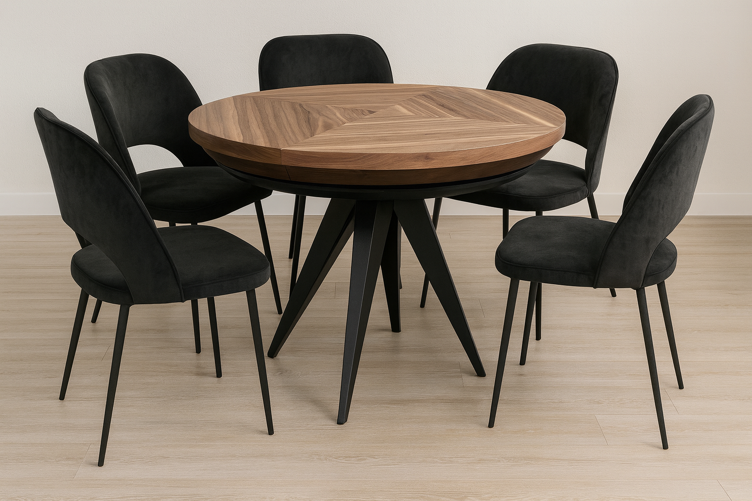 OKRĄGŁY STÓŁ ROZKŁADANY NA METALOWEJ PODSTAWIE T49