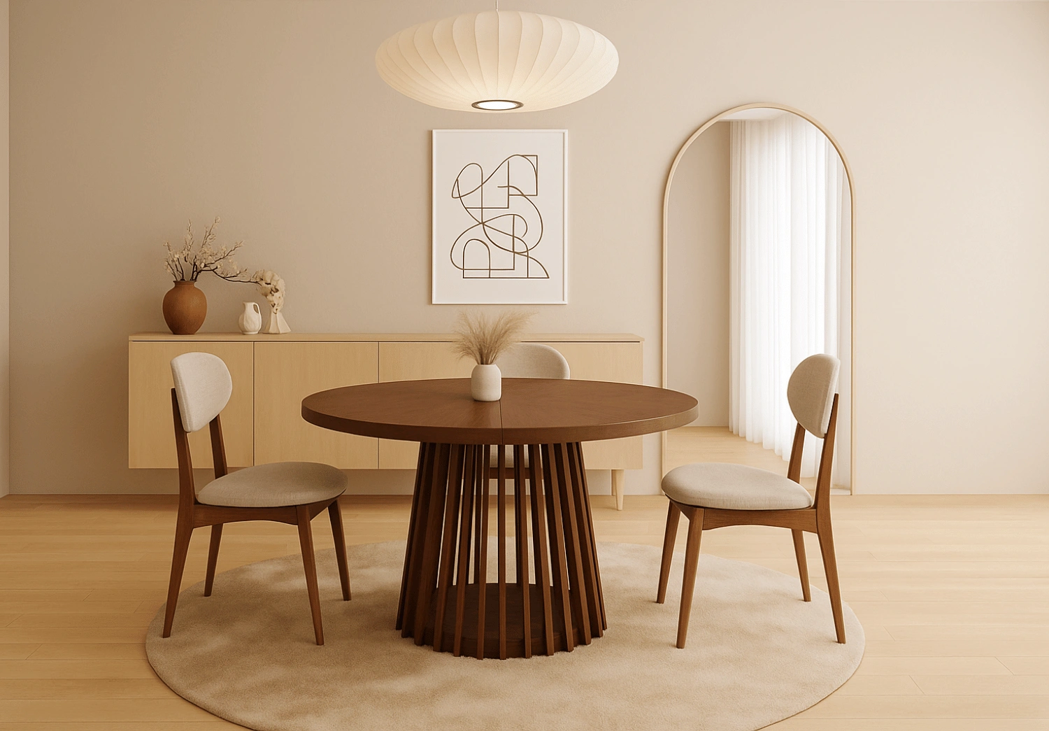 Stół Bartek T77 to połączenie elegancji, naturalnego drewna i nowoczesnej funkcjonalności. Model ten oferuje okrągły blat o średnicy 110 cm, który można rozszerzyć do 210 cm, co zapewnia wygodne miejsce do wspólnych posiłków i spotkań z rodziną czy gośćmi. Dzięki temu jest to doskonały stół zarówno do mniejszych jadalni, jak i bardziej przestronnych salonów.