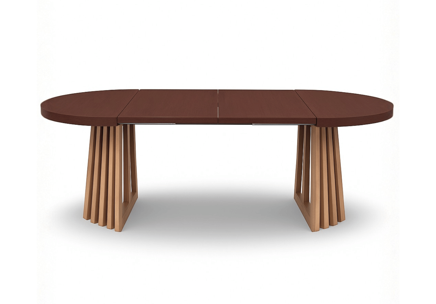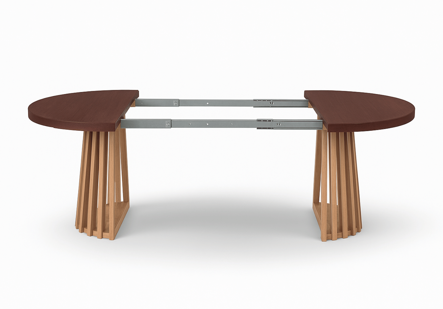 • Mechanizm rozkładania umożliwia łatwe i płynne rozsuwanie blatu, a dwie dokładki zapewniają pełną stabilność po rozłożeniu.