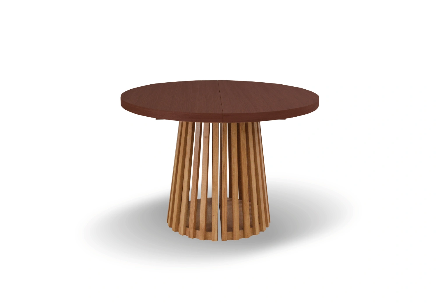 • Okrągły stół 110–210 cm to elegancki i funkcjonalny mebel idealny do jadalni i salonu. Dzięki nowoczesnemu systemowi rozkładania oferuje dużą przestrzeń dla gości, a naturalny fornir dębowy i oryginalne lamele nadają mu luksusowy, nowoczesny charakter.
