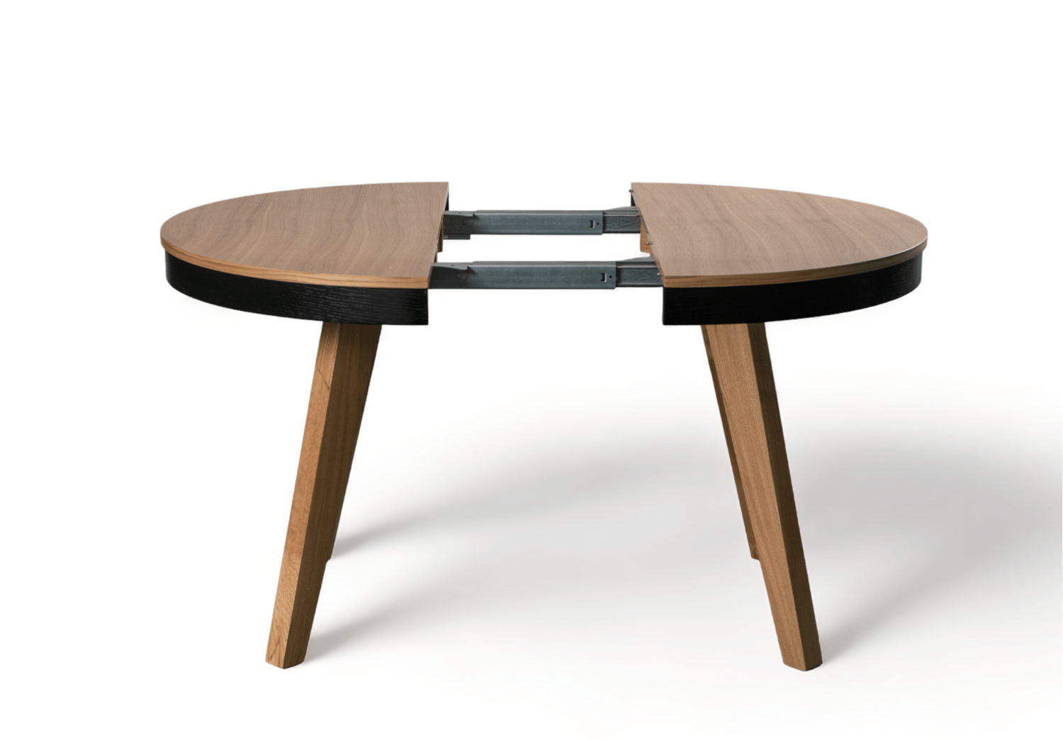 Wkładki: dwie wkładki o wymiarach 50 × 100 cm pozwalają wydłużyć blat aż do 200 cm. Wkładki nie są chowane pod blat, co pozwala zachować stabilność i smukłość konstrukcji.